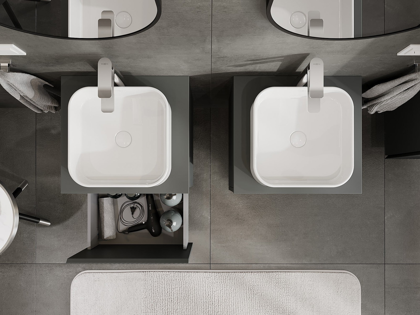Nuestros muebles de baño modulares se pueden combinar en diferentes configuraciones de color, lo que permite una personalización completa. Se puede elegir tanto el aspecto como las funciones de los distintos elementos, lo que permite adaptar los muebles a las propias preferencias estilísticas y de uso.