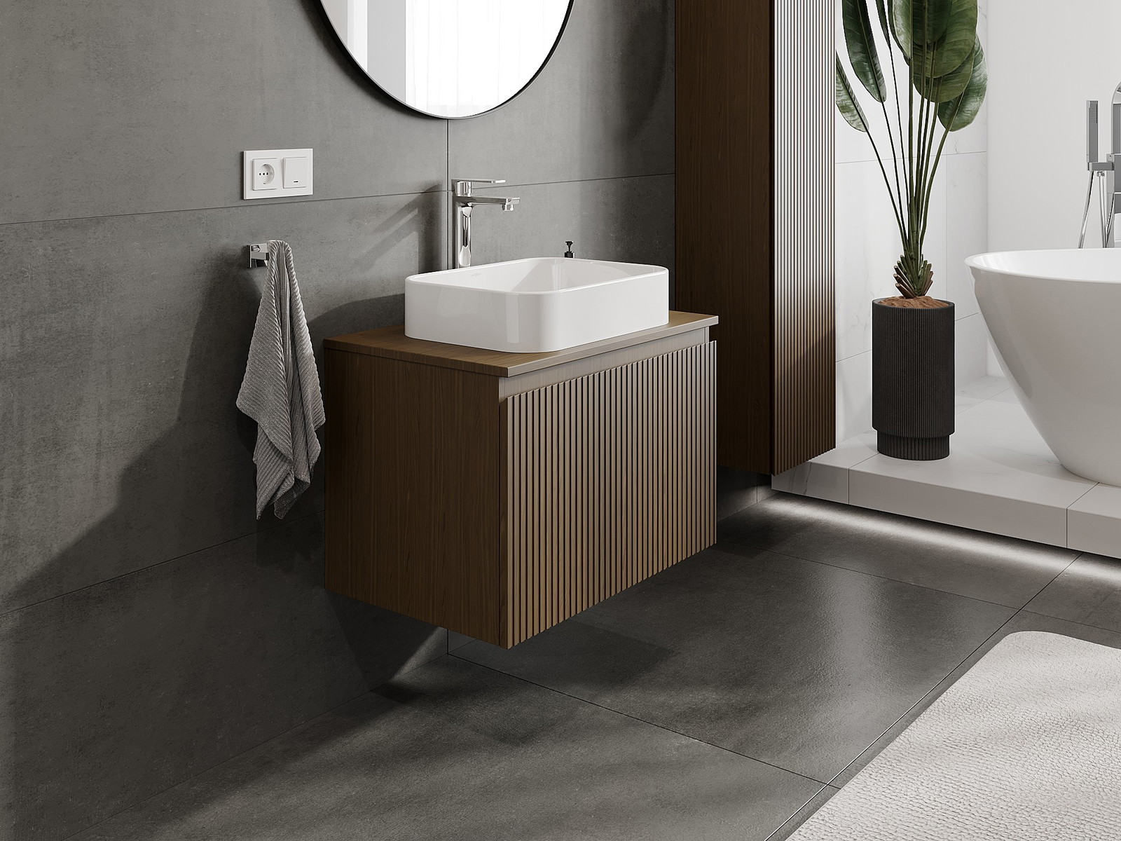 Mexen Rivel mueble de baño bajo lavabo 70 cm con encimera, 1 cajón, ranurado, nogal - 91A20-07047-1-BFC86
