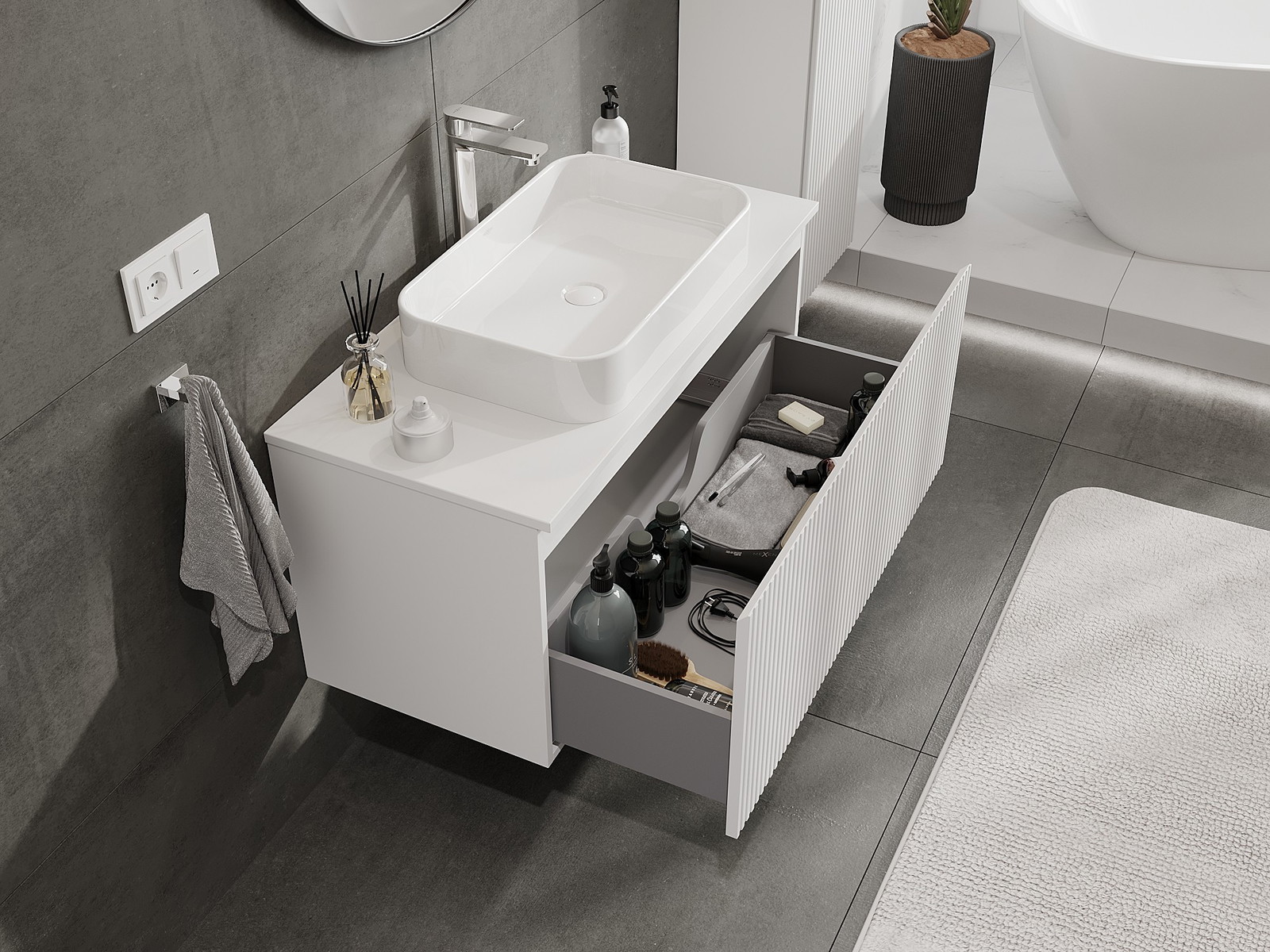El cuerpo del gabinete se entrega completamente ensamblado, lo que significa máxima comodidad y ahorro de tiempo. No tienes que pasar horas ensamblando el mueble, solo necesitas instalarlo en el lugar elegido en el baño. Es la solución ideal para personas que valoran un montaje rápido y un efecto inmediato.