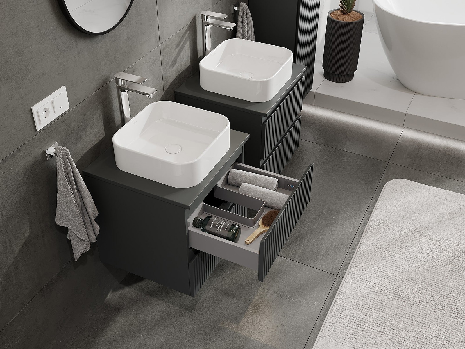 El cuerpo del gabinete se entrega completamente ensamblado, lo que significa máxima comodidad y ahorro de tiempo. No tienes que pasar horas ensamblando el mueble, solo necesitas instalarlo en el lugar elegido en el baño. Es la solución ideal para personas que valoran un montaje rápido y un efecto inmediato.