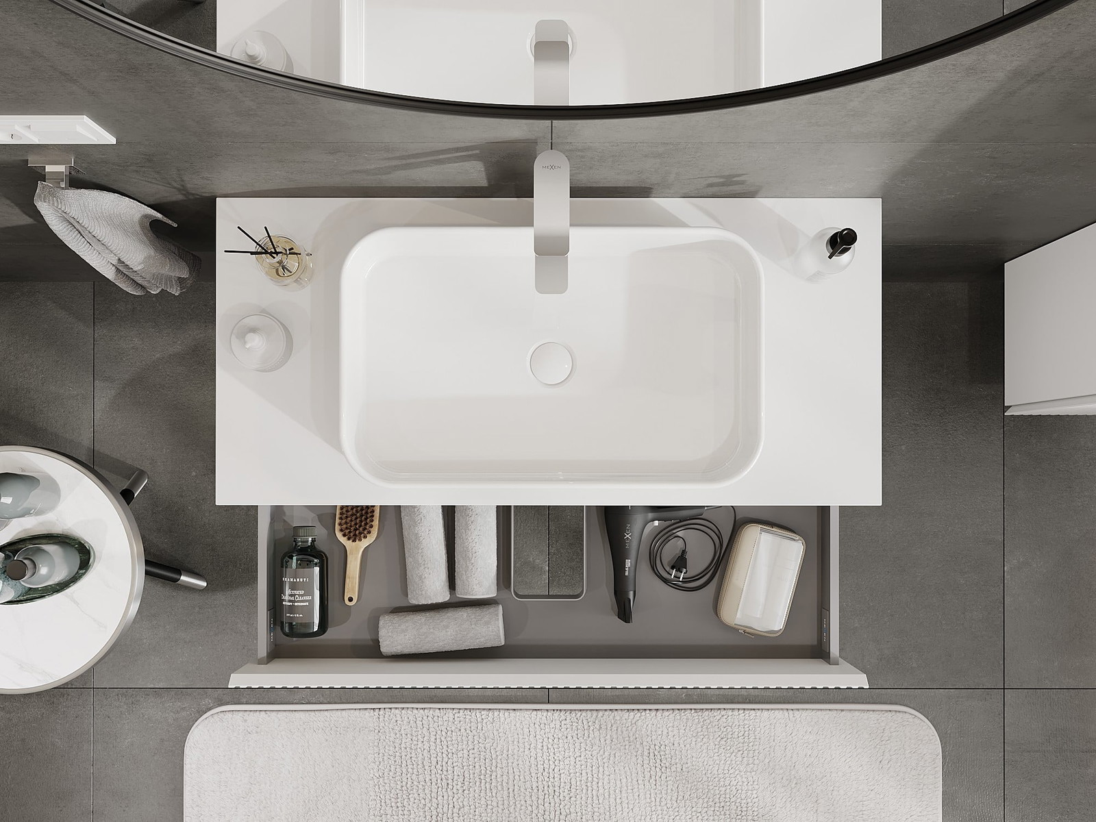 El cuerpo del gabinete se entrega completamente ensamblado, lo que significa máxima comodidad y ahorro de tiempo. No tienes que pasar horas ensamblando el mueble, solo necesitas instalarlo en el lugar elegido en el baño. Es la solución ideal para personas que valoran un montaje rápido y un efecto inmediato.