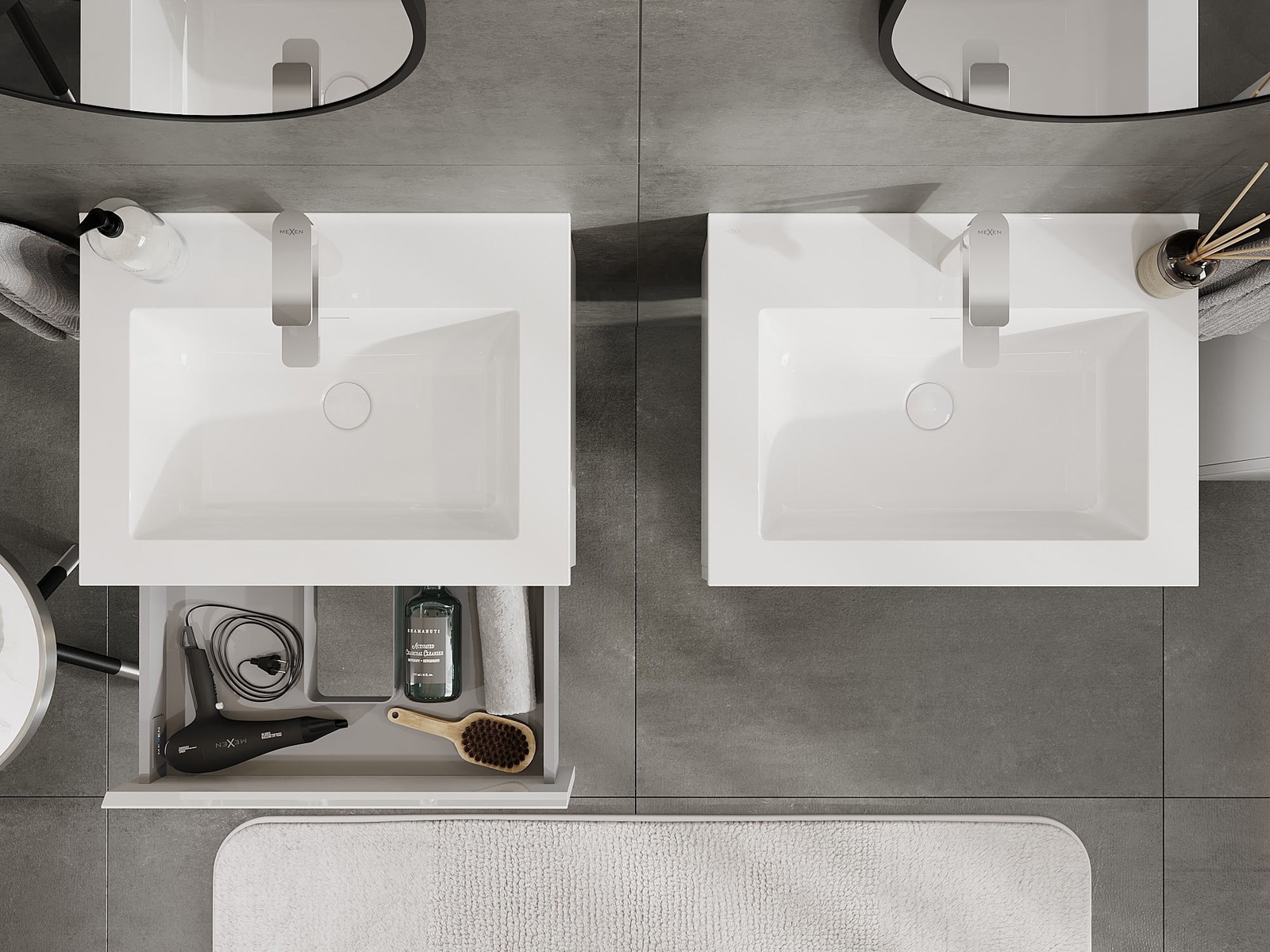 Mexen Orio armario de baño 60 cm con lavabo Otis, 1 cajón, blanco brillo - 91A10-06023-1-BF00-W18M00