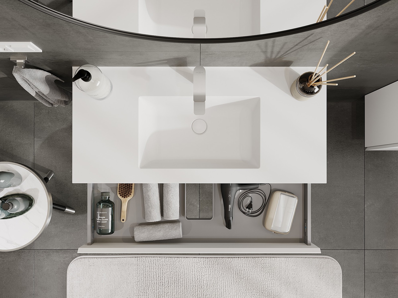 El cuerpo del gabinete se entrega completamente ensamblado, lo que significa máxima comodidad y ahorro de tiempo. No tienes que pasar horas ensamblando el mueble, solo necesitas instalarlo en el lugar elegido en el baño. Es la solución ideal para personas que valoran un montaje rápido y un efecto inmediato.