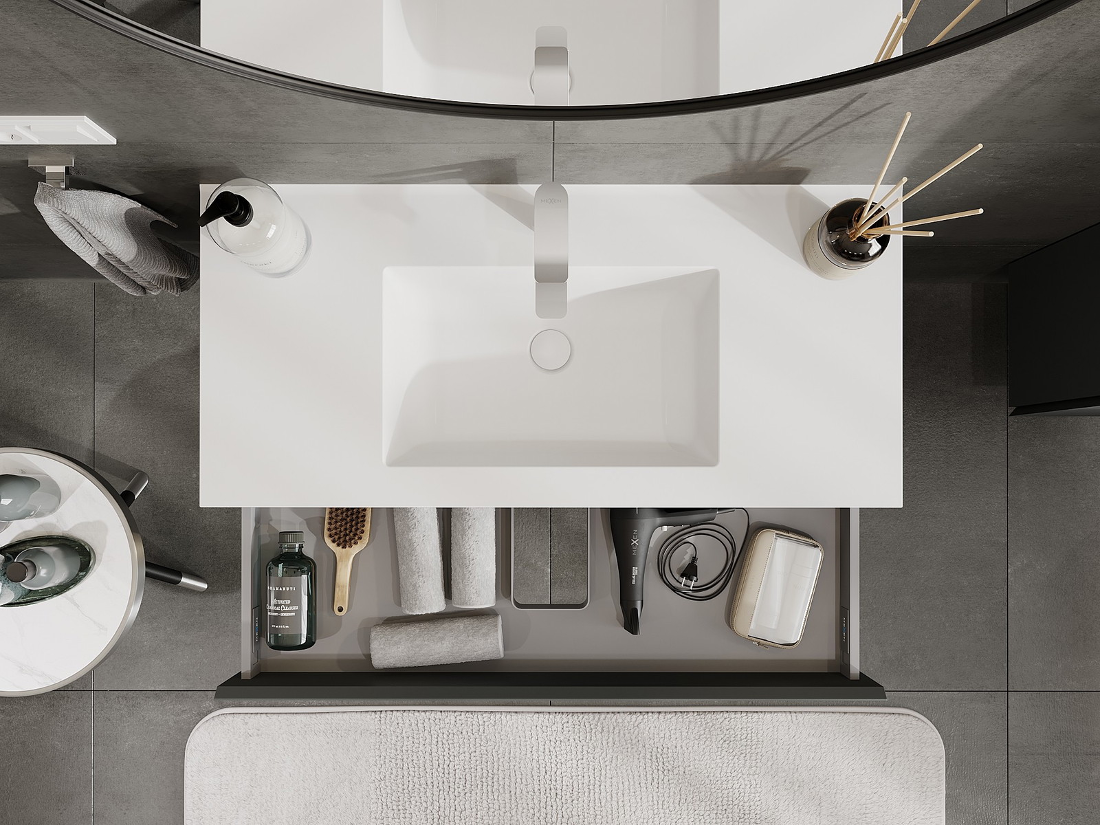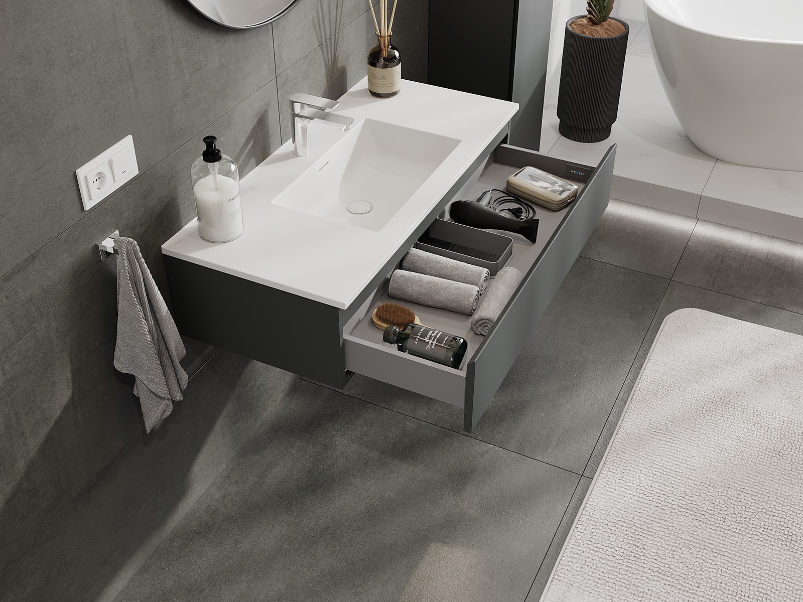 Mexen Orio gabinete de baño 100 cm con lavabo Otis, 1 cajón, grafito mate/blanco mate - 91A10-10023-1-BF66-W18M01