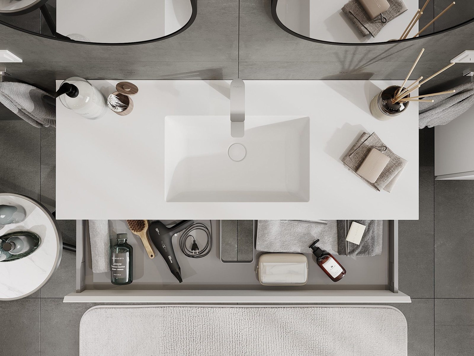 El cuerpo del gabinete se entrega completamente ensamblado, lo que significa máxima comodidad y ahorro de tiempo. No tienes que pasar horas ensamblando el mueble, solo necesitas instalarlo en el lugar elegido en el baño. Es la solución ideal para personas que valoran un montaje rápido y un efecto inmediato.