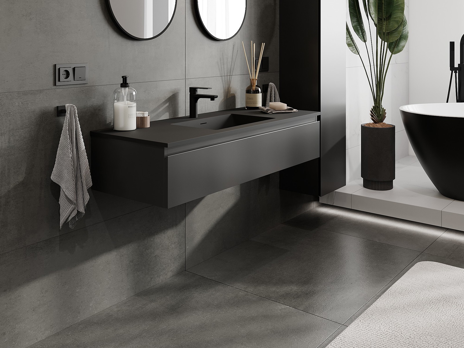 Mexen Orio mueble de baño 120 cm con lavabo Otis, 1 cajón, negro mate - 91A10-12023-1-BF71-W18M71