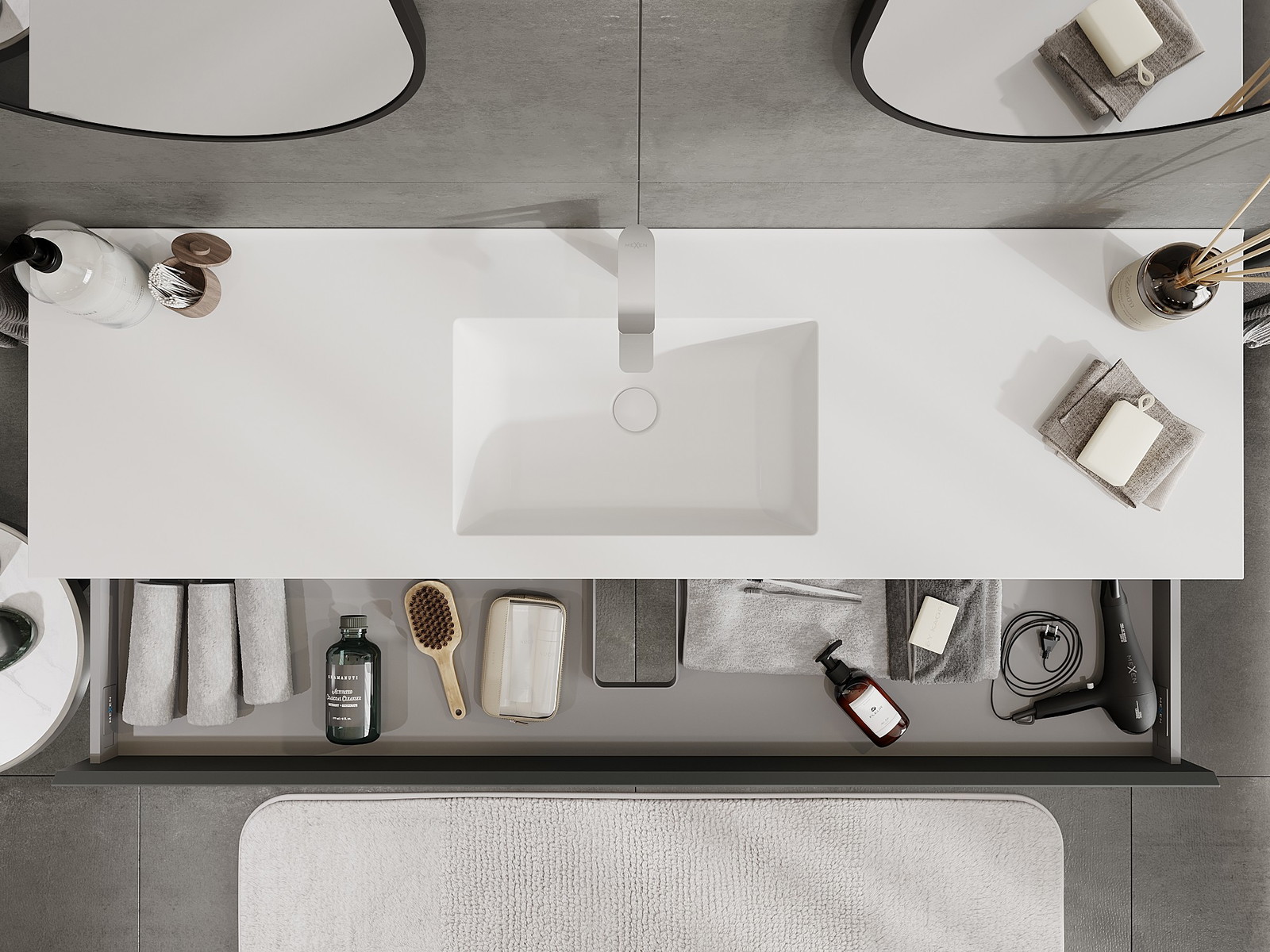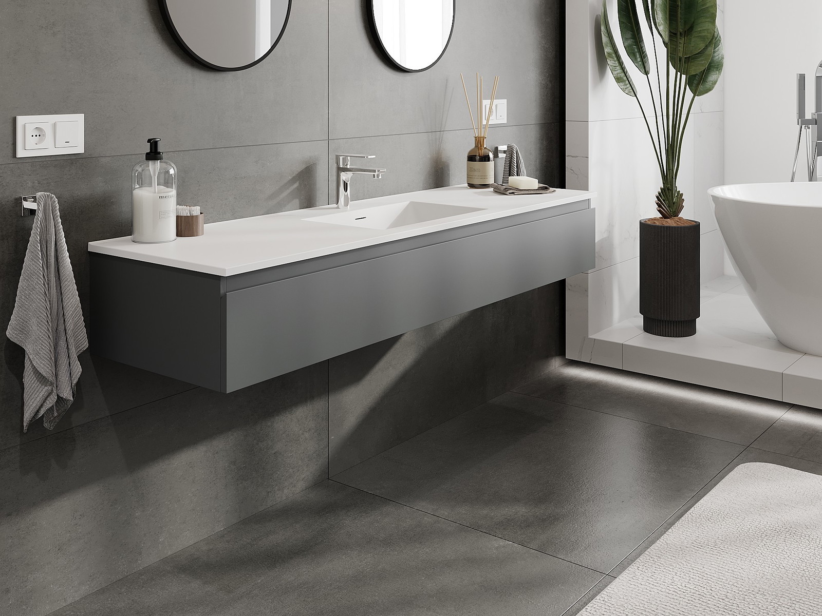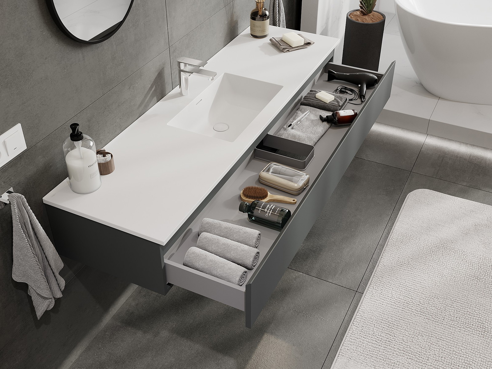 Mexen Orio armario de baño de 160 cm con lavabo Otis, 1 cajón, grafito mate/blanco mate - 91A10-16023-1-BF66-W18M01