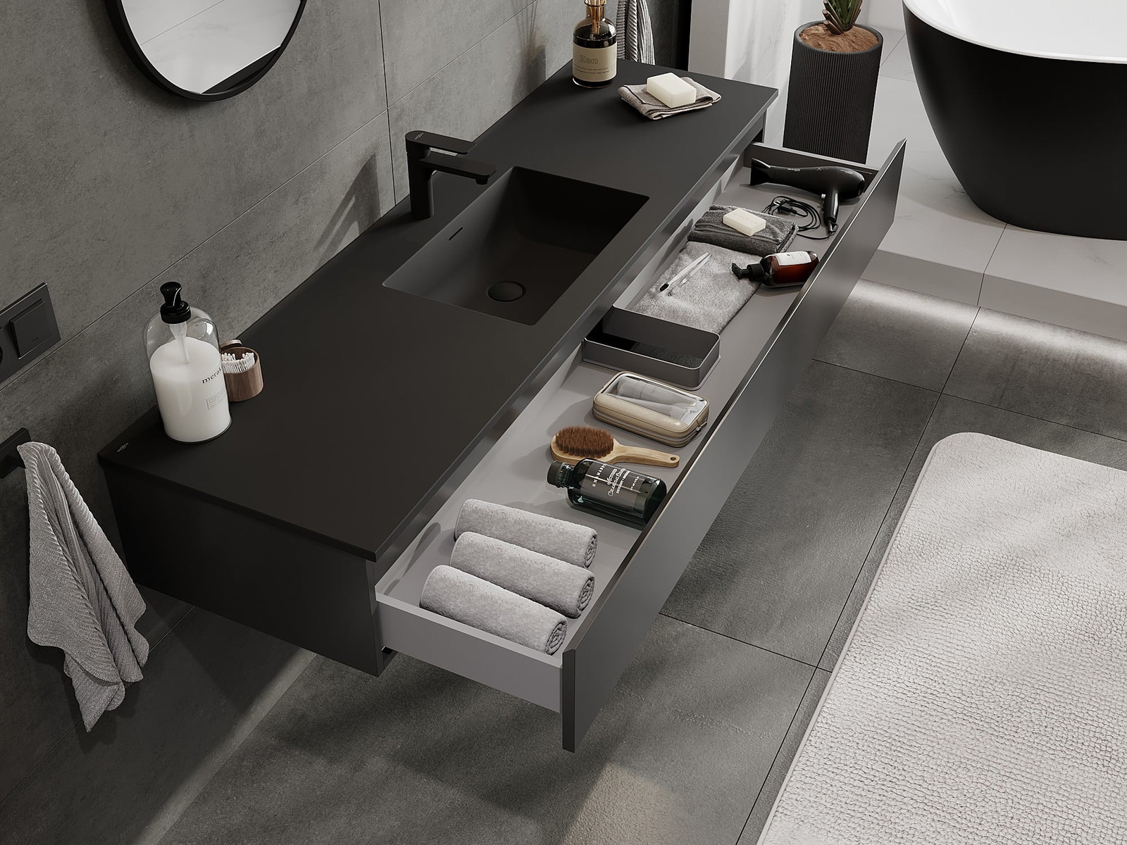 Mexen Orio mueble de baño 160 cm con lavabo Otis, 1 cajón, negro mate - 91A10-16023-1-BF71-W18M71