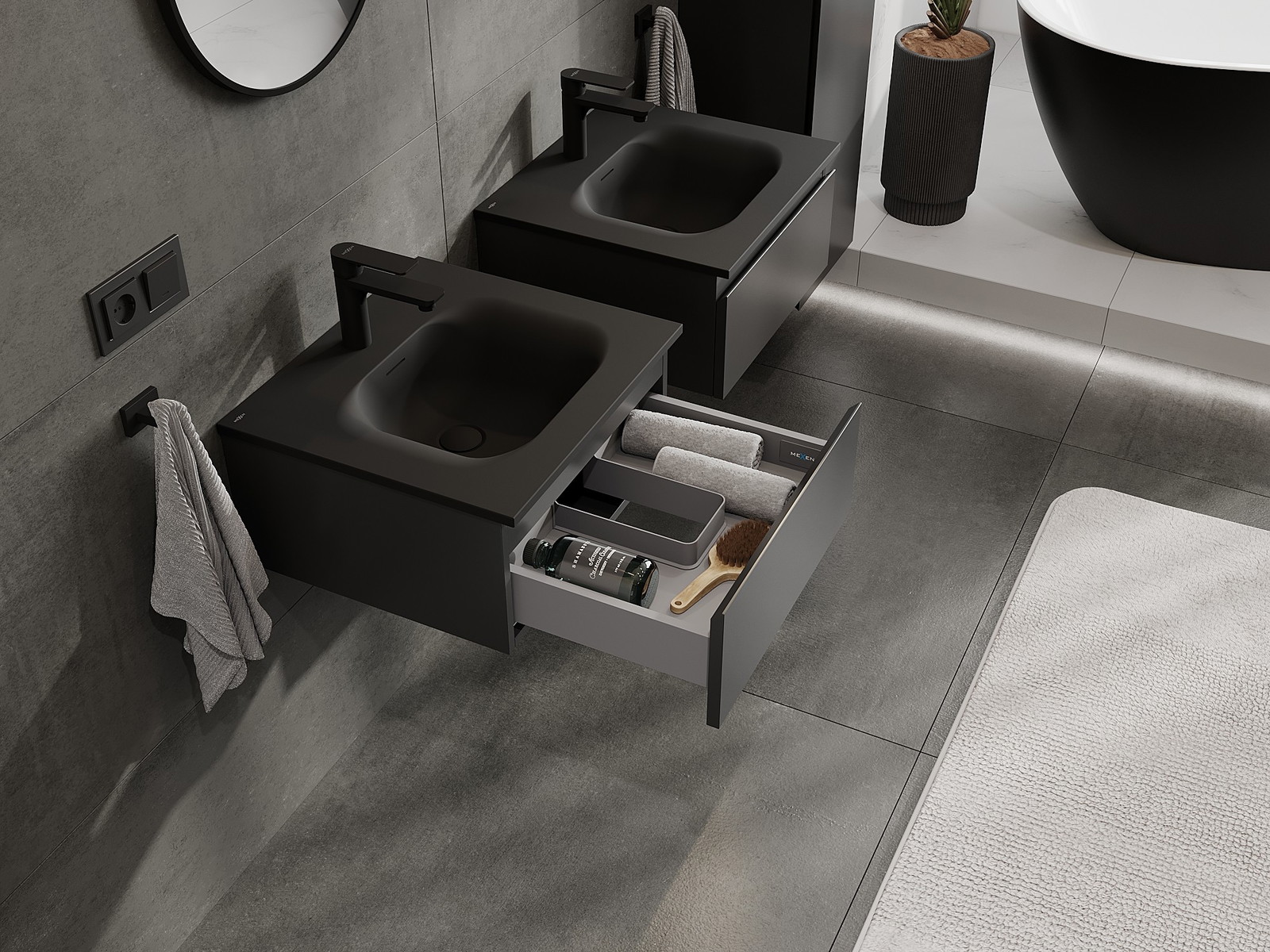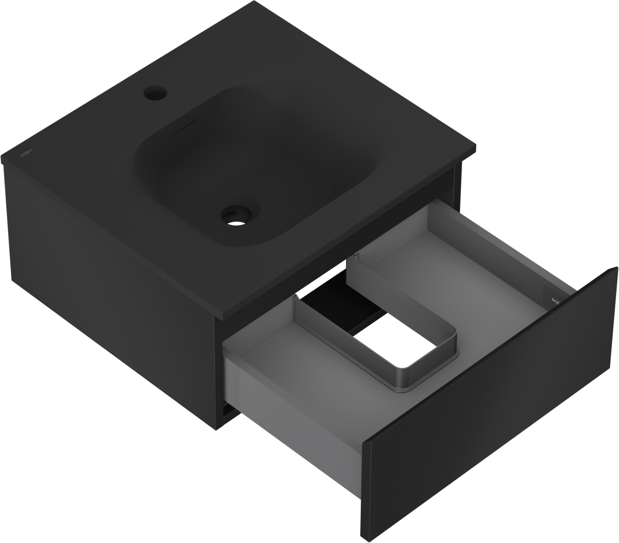 Mexen Orio mueble de baño 50 cm con lavabo Vela, 1 cajón, negro mate - 91A10-05023-1-BF71-W23M71