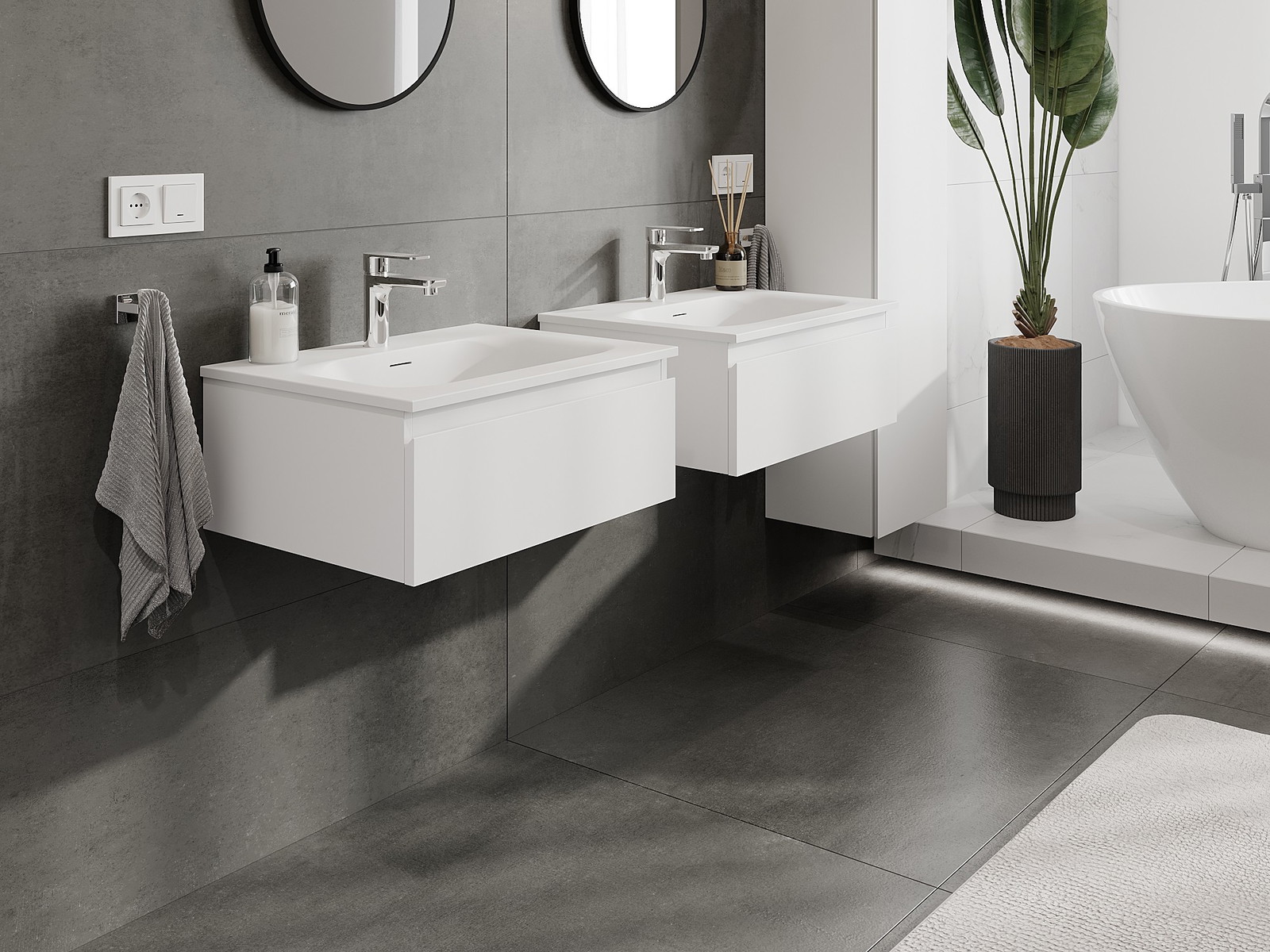 Nuestros muebles de baño modulares se pueden combinar en diferentes configuraciones de color, lo que permite una personalización completa. Se puede elegir tanto el aspecto como las funciones de los distintos elementos, lo que permite adaptar los muebles a las propias preferencias estilísticas y de uso.