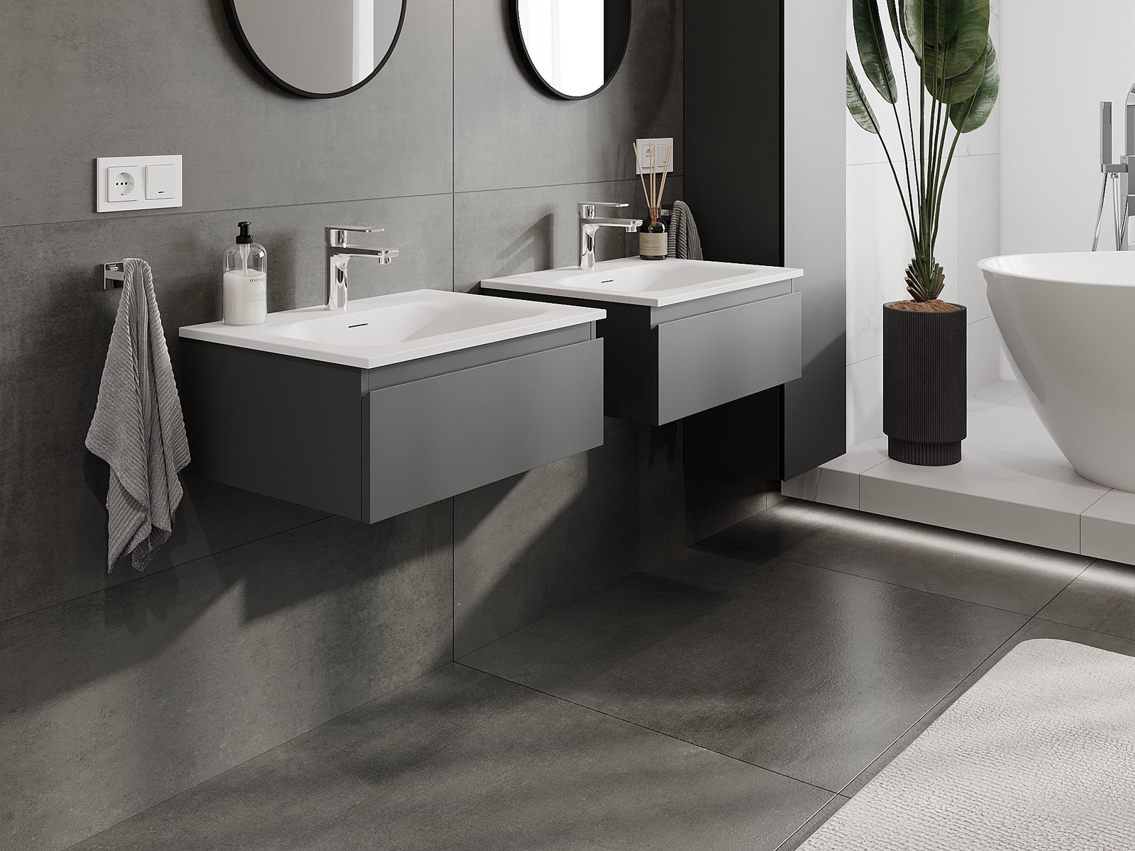 Nuestros muebles de baño modulares se pueden combinar en diferentes configuraciones de color, lo que permite una personalización completa. Se puede elegir tanto el aspecto como las funciones de los distintos elementos, lo que permite adaptar los muebles a las propias preferencias estilísticas y de uso.