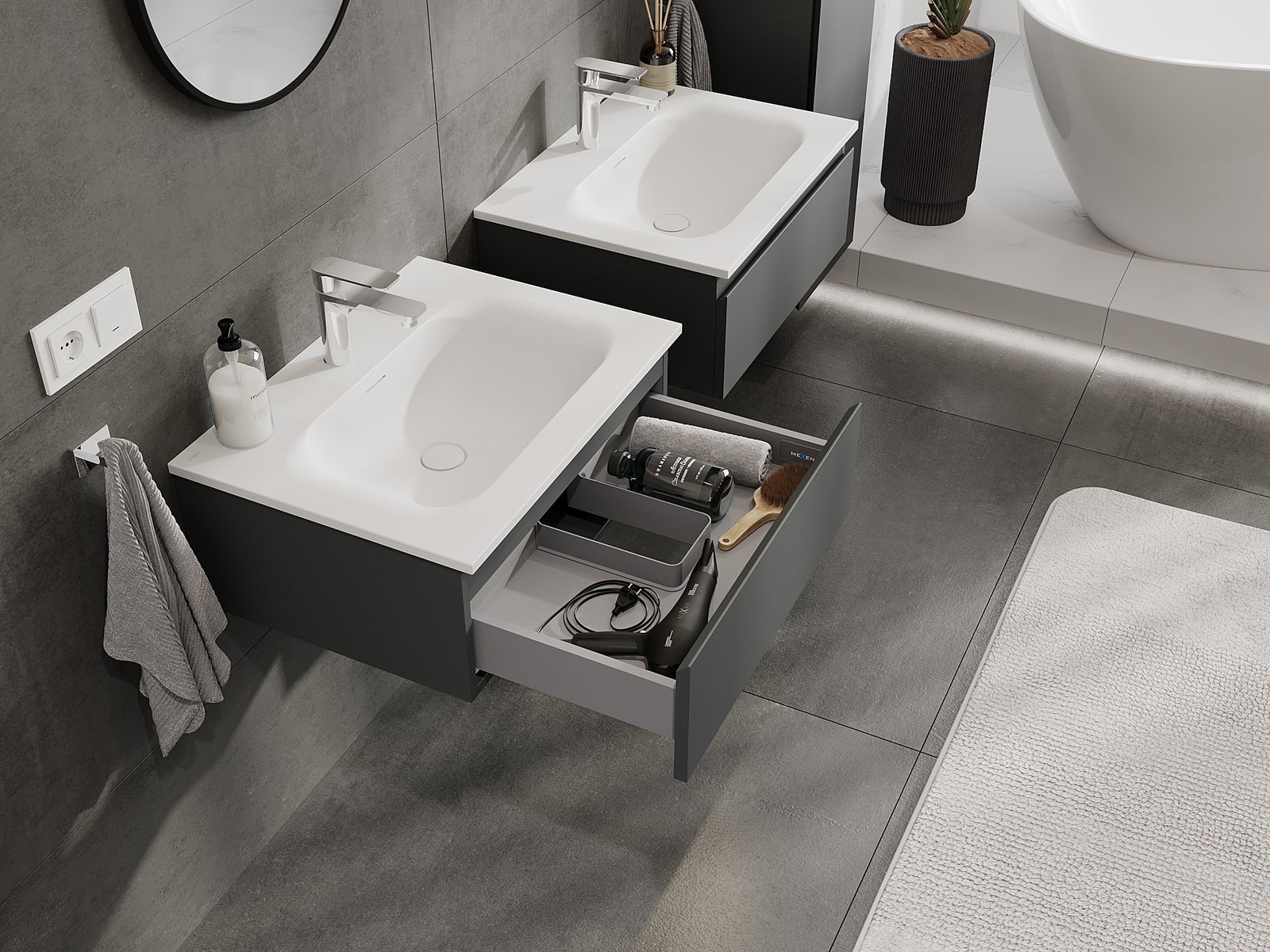 Mexen Orio mueble de baño 60 cm con lavabo Vela, 1 cajón, grafito mate/blanco mate - 91A10-06023-1-BF66-W23M01