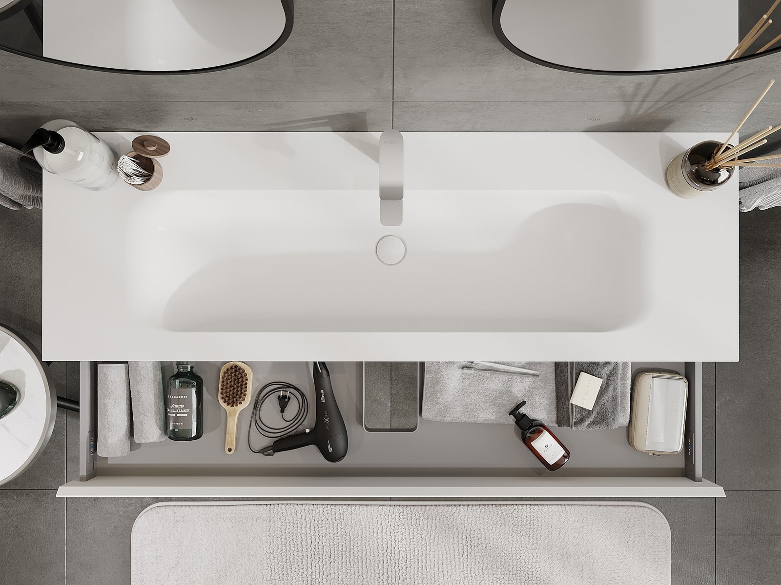 Nuestros muebles de baño modulares se pueden combinar en diferentes configuraciones de color, lo que permite una personalización completa. Se puede elegir tanto el aspecto como las funciones de los distintos elementos, lo que permite adaptar los muebles a las propias preferencias estilísticas y de uso.