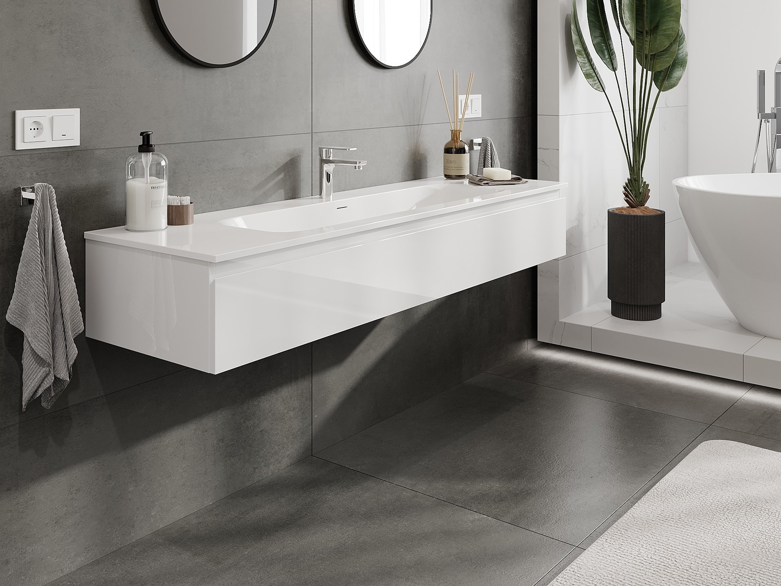 Mexen Orio gabinete de baño 160 cm con lavabo Vela, 1 cajón, blanco brillo - 91A10-16023-1-BF00-W23M00