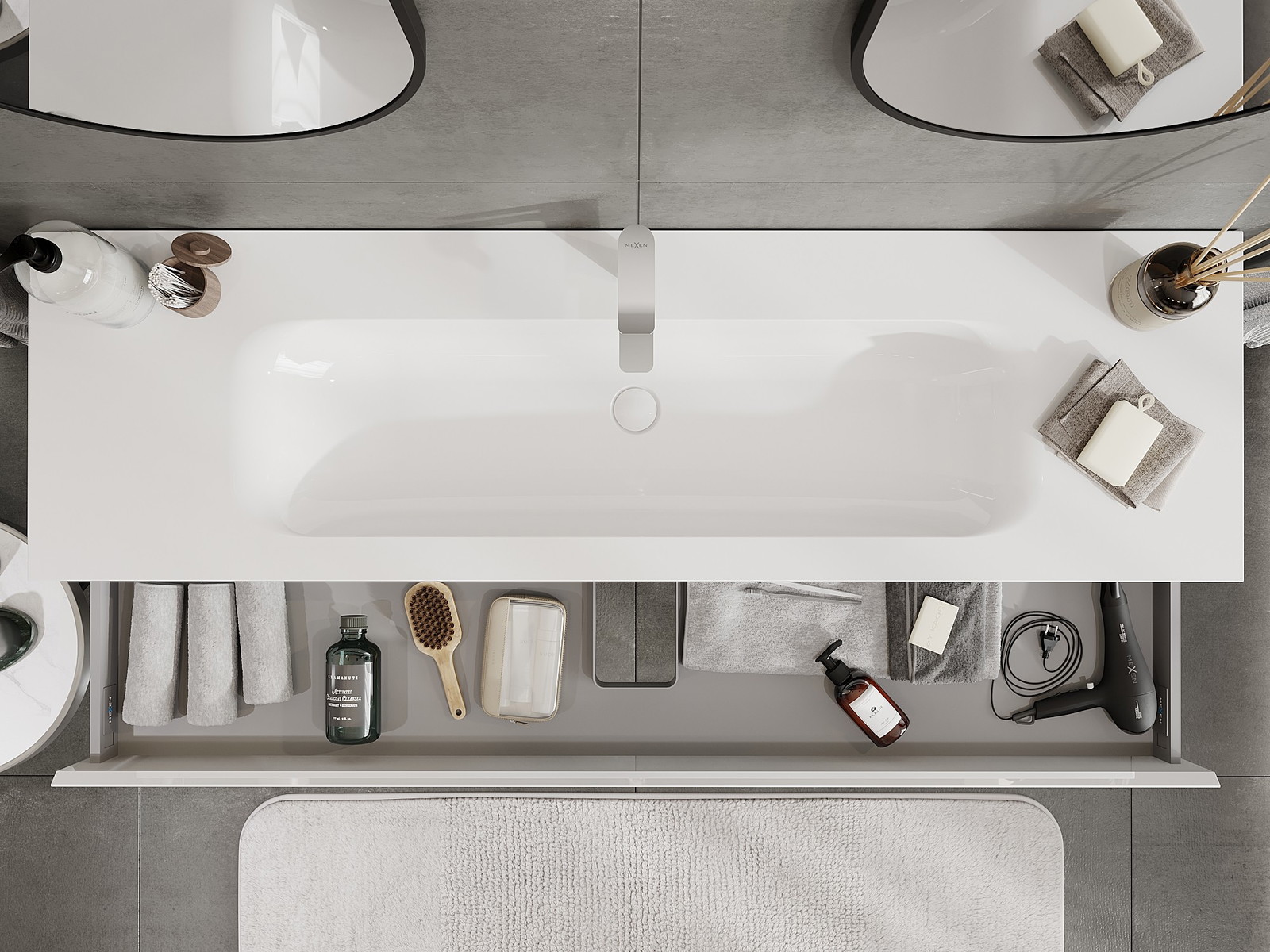 Nuestros muebles de baño modulares se pueden combinar en diferentes configuraciones de color, lo que permite una personalización completa. Se puede elegir tanto el aspecto como las funciones de los distintos elementos, lo que permite adaptar los muebles a las propias preferencias estilísticas y de uso.