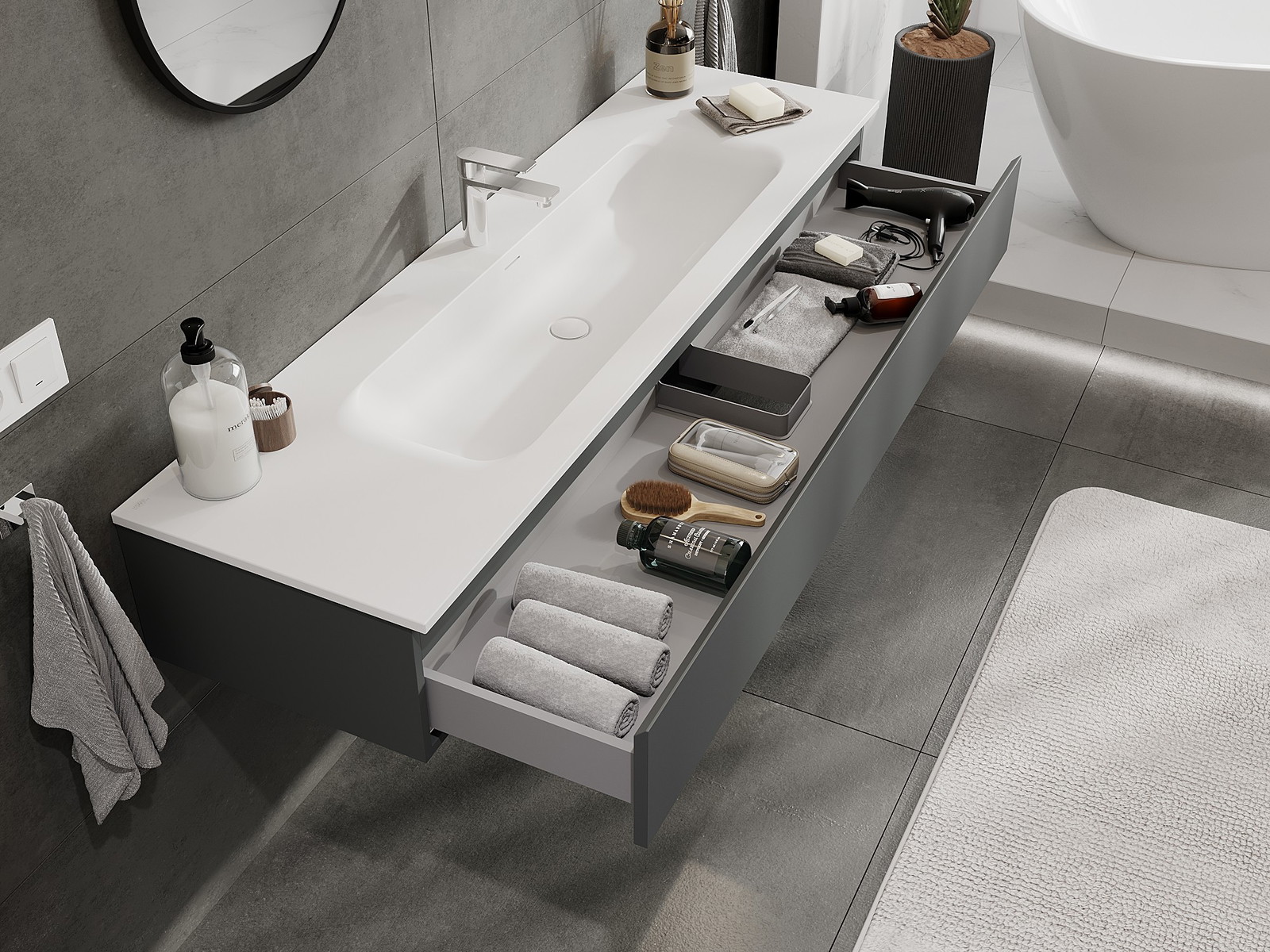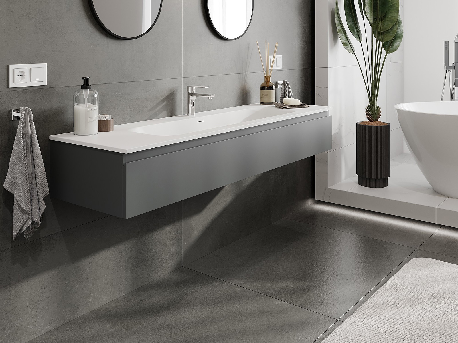 Mexen Orio mueble de baño 160 cm con lavabo Vela, 1 cajón, grafito mate/blanco mate - 91A10-16023-1-BF66-W23M01