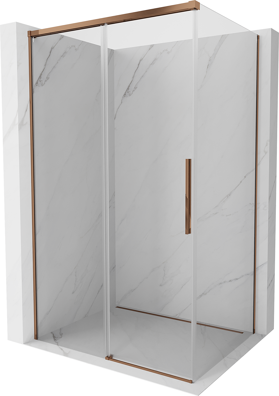 Mexen Rox cabina de ducha corredera 155 x 110 cm, transparente, oro rosa - 8C2-155-110-60-00