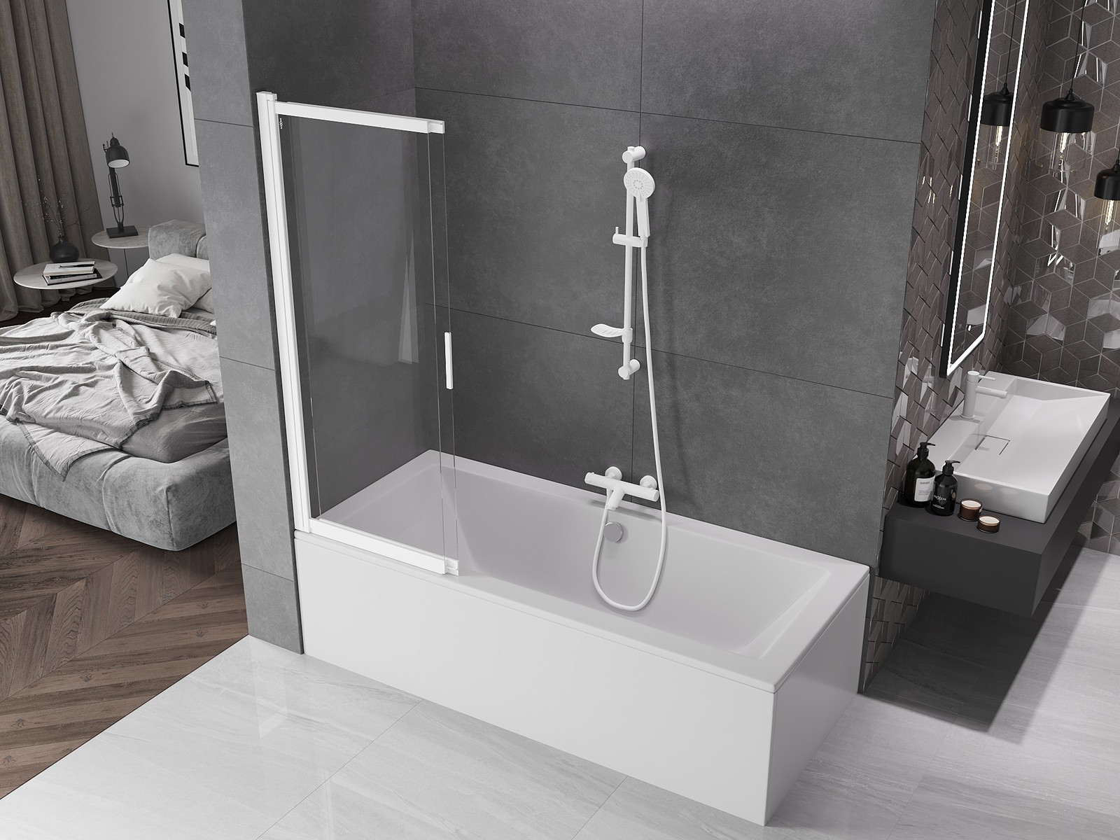 Protección efectiva contra el derrame de agua durante el baño. La mampara tiene juntas que se ajustan perfectamente a la superficie del vidrio y al borde de la bañera. Solución funcional que garantiza seguridad y facilidad de limpieza.