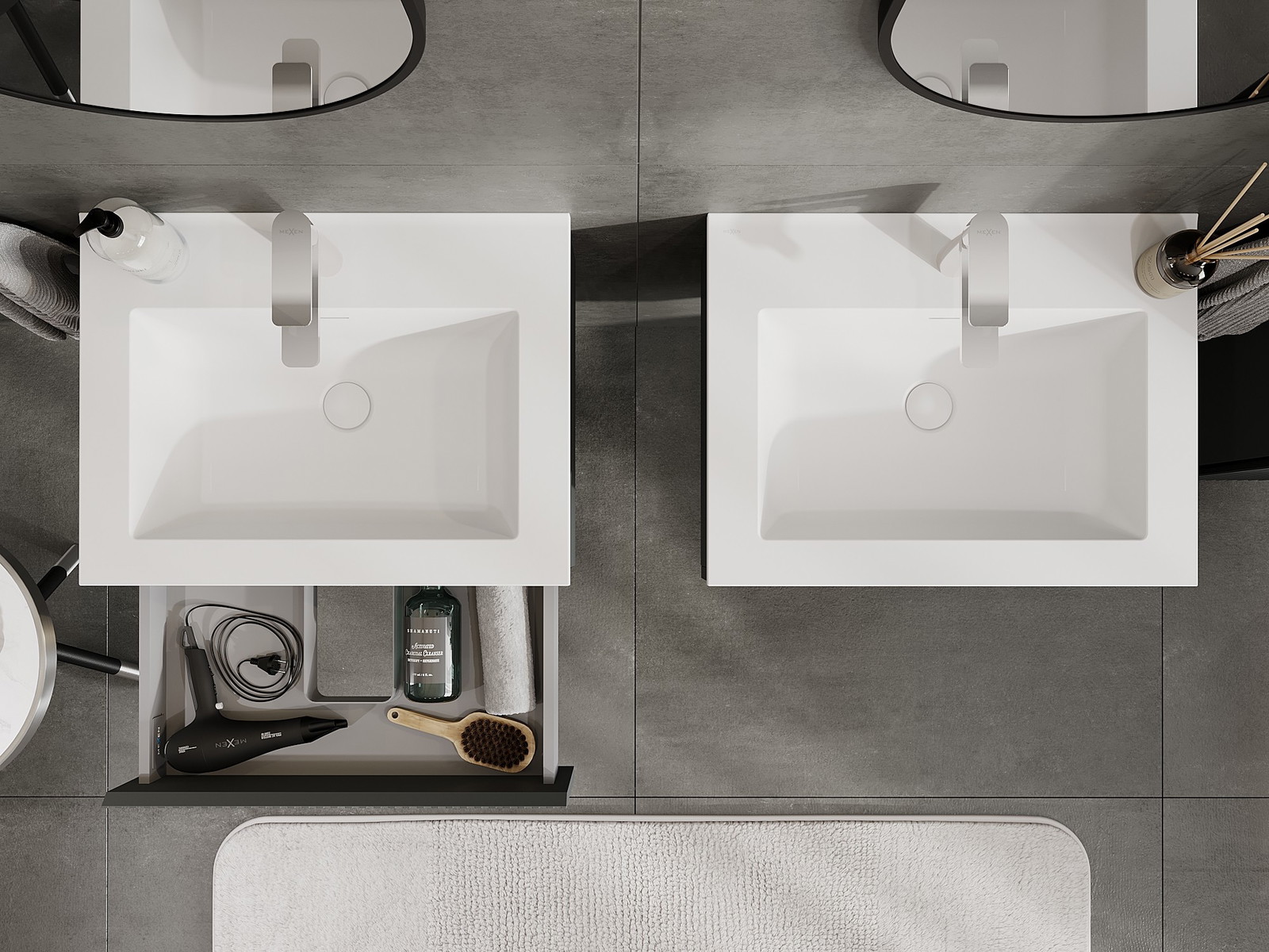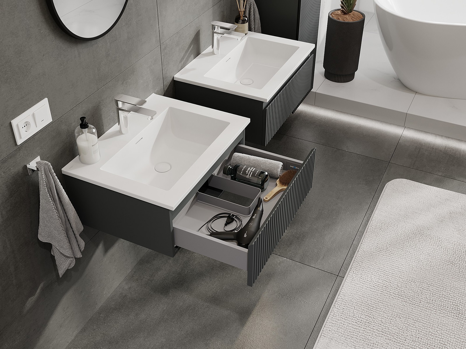 Mexen Rivel armario de baño 60 cm con lavabo Otis, 1 cajón, ranurado, grafito mate/blanco mate - 91A20-06023-1-BF66-W18M01