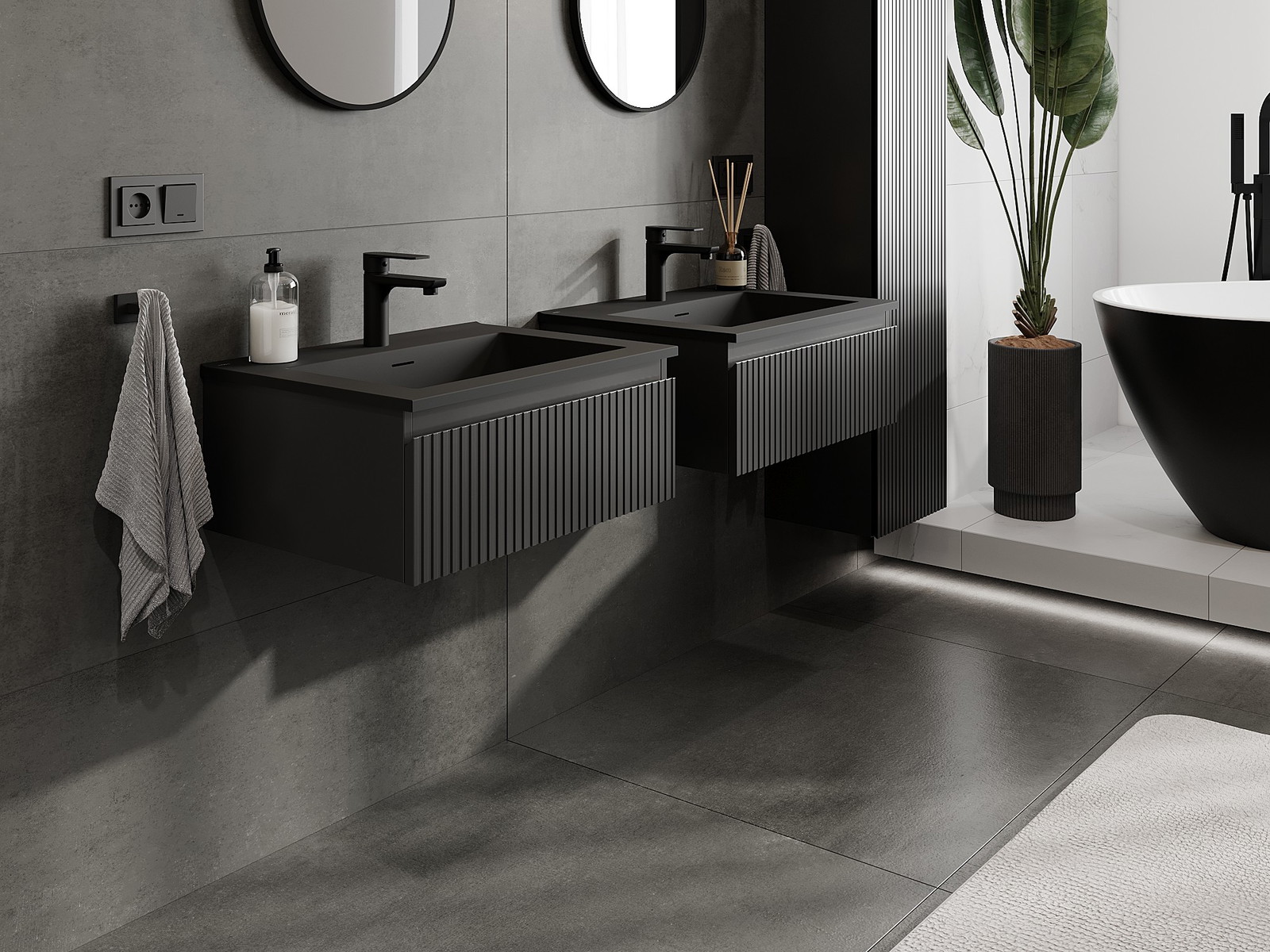 Mexen Rivel gabinete de baño 60 cm con lavabo Otis, 1 cajón, ranurado, negro mate - 91A20-06023-1-BF71-W18M71