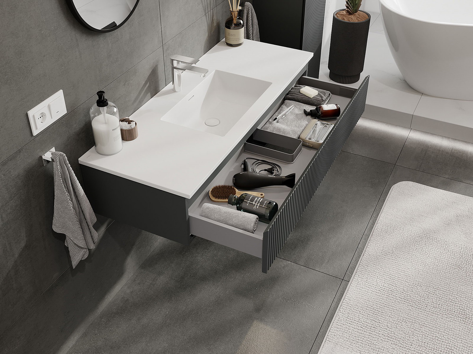 Nuestros muebles de baño modulares se pueden combinar en diferentes configuraciones de color, lo que permite una personalización completa. Se puede elegir tanto el aspecto como las funciones de los distintos elementos, lo que permite adaptar los muebles a las propias preferencias estilísticas y de uso.