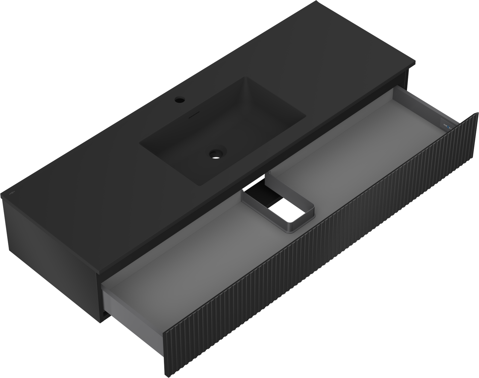 Mexen Rivel armario de baño 140 cm con lavabo Otis, 1 cajón, ranurado, negro mate - 91A20-14023-1-BF71-W18M71