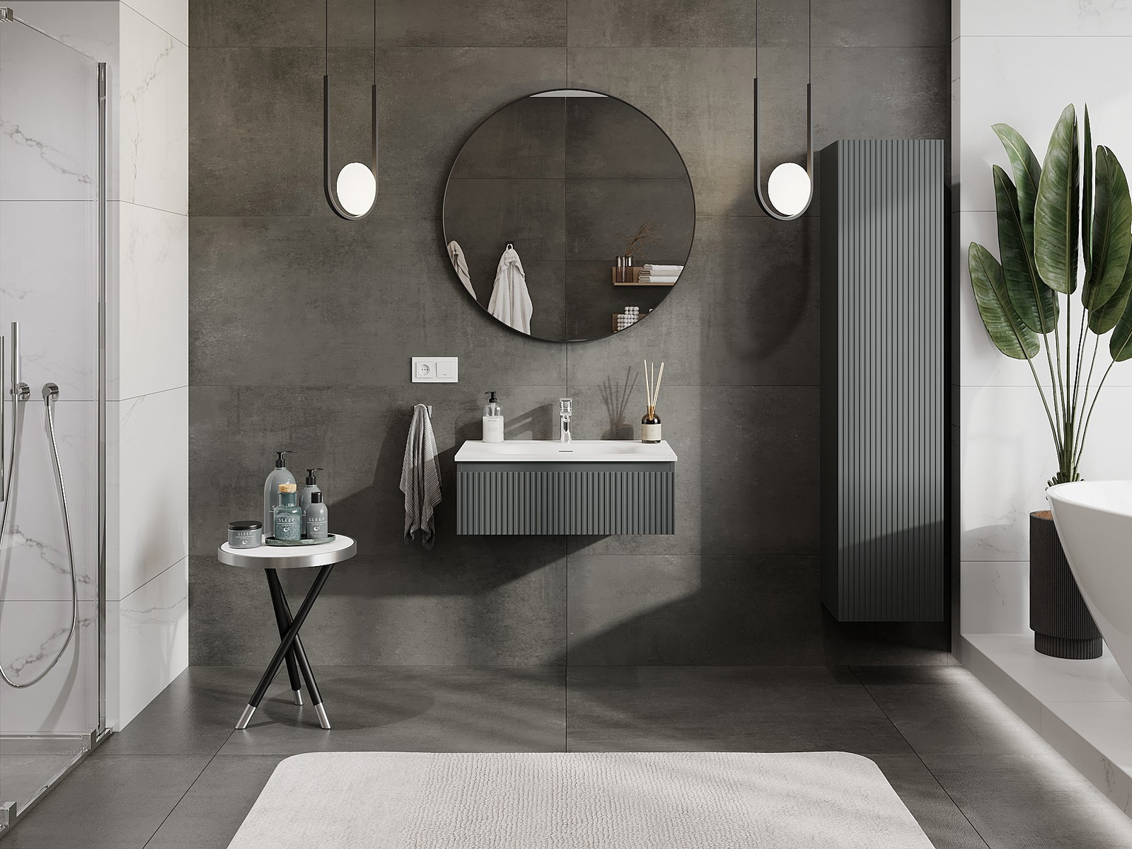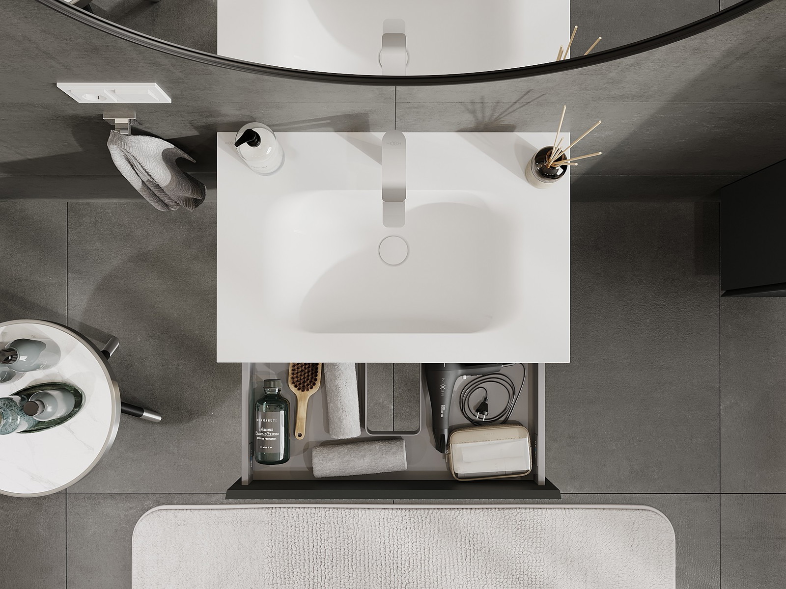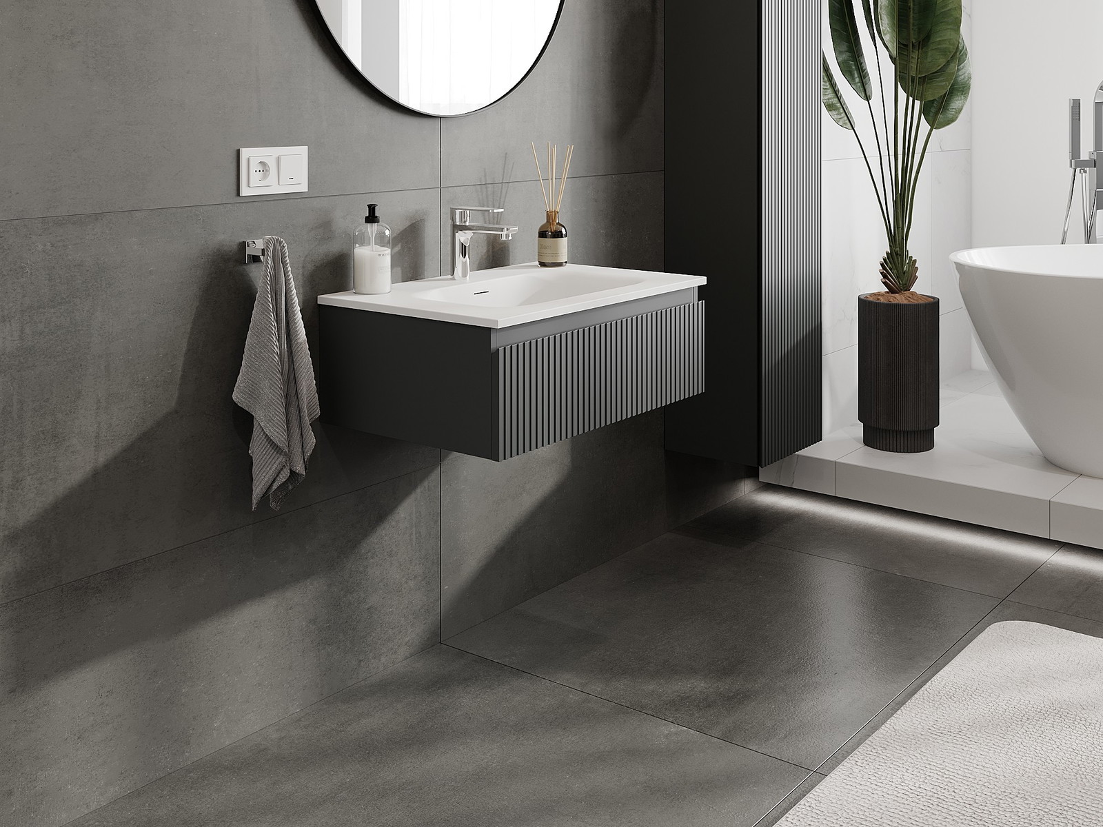Mexen Rivel armario de baño de 70 cm con lavabo Vela, 1 cajón, ranurado, grafito mate/blanco mate - 91A20-07023-1-BF66-W23M01