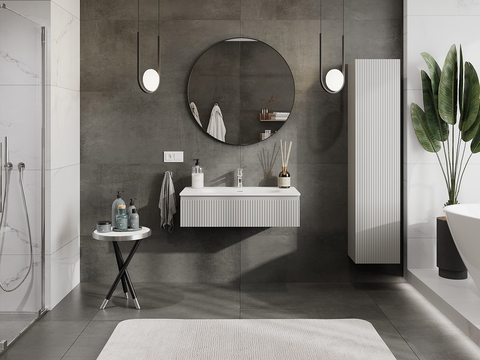 El cuerpo del gabinete se entrega completamente ensamblado, lo que significa máxima comodidad y ahorro de tiempo. No tienes que pasar horas ensamblando el mueble, solo necesitas instalarlo en el lugar elegido en el baño. Es la solución ideal para personas que valoran un montaje rápido y un efecto inmediato.