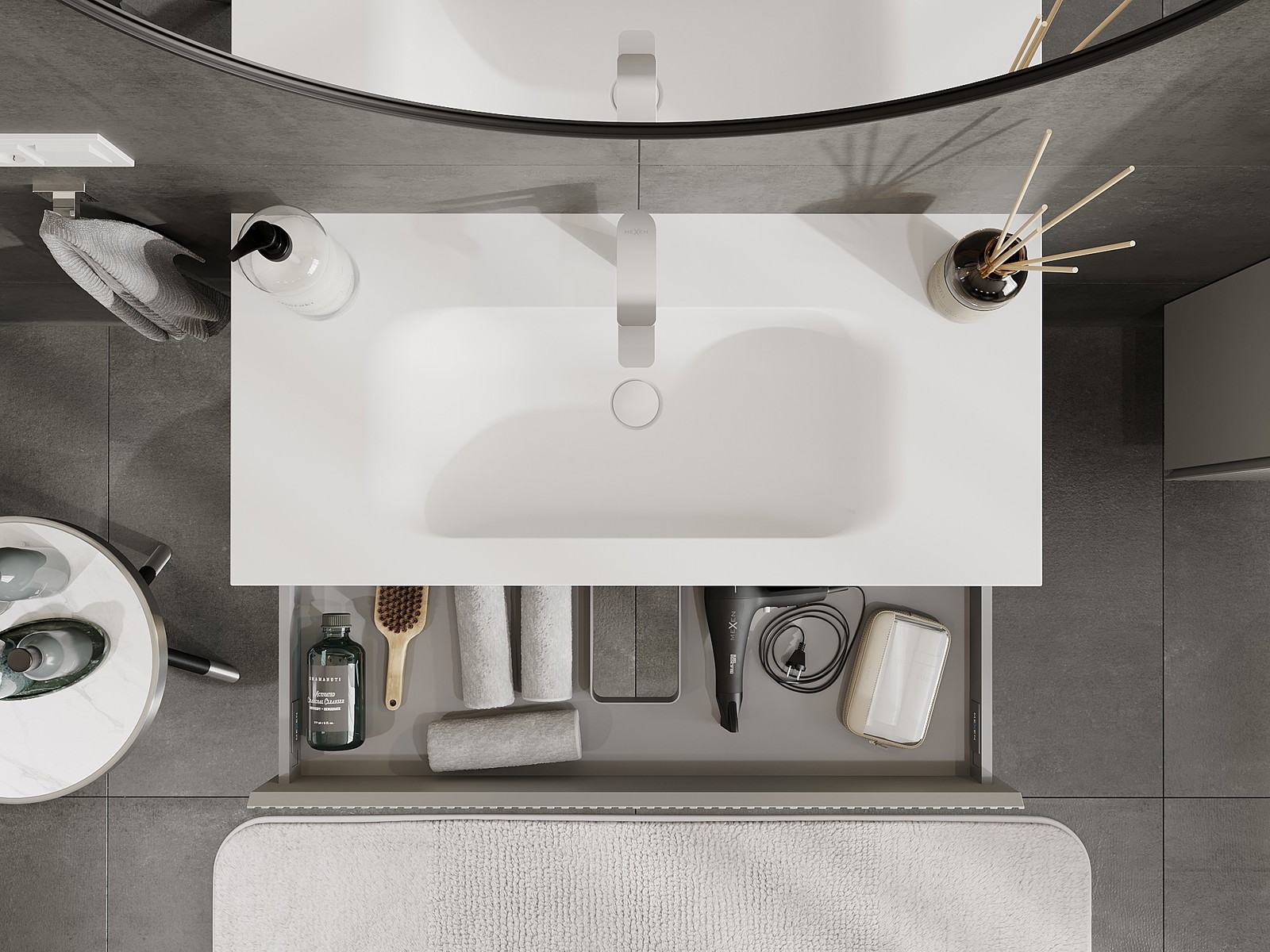 El cuerpo del gabinete se entrega completamente ensamblado, lo que significa máxima comodidad y ahorro de tiempo. No tienes que pasar horas ensamblando el mueble, solo necesitas instalarlo en el lugar elegido en el baño. Es la solución ideal para personas que valoran un montaje rápido y un efecto inmediato.