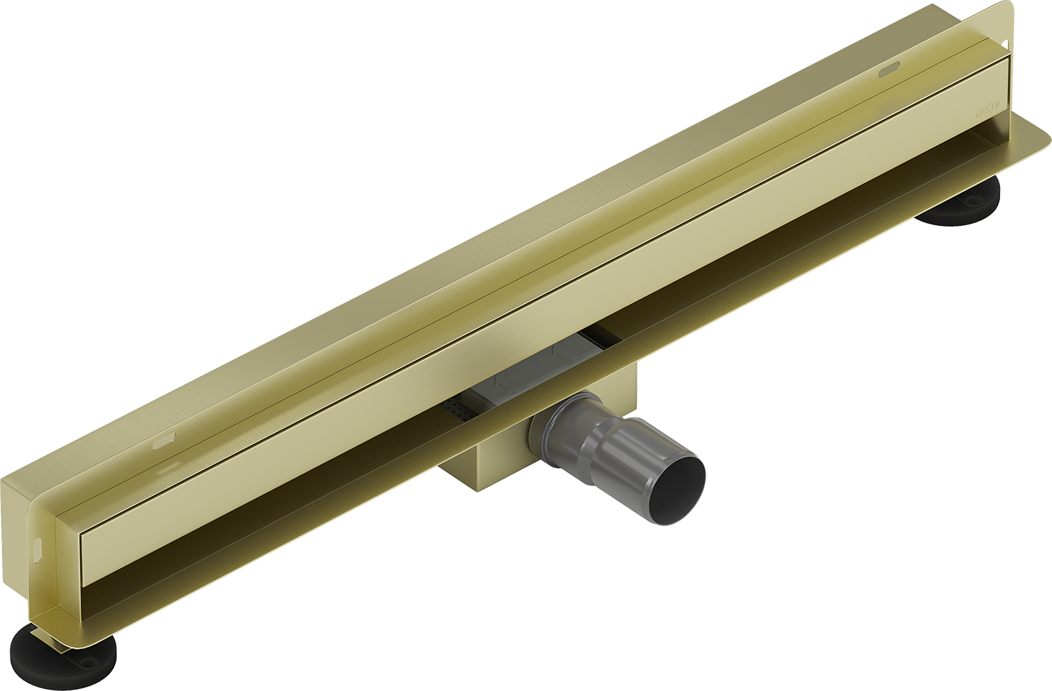 El desagüe lineal se instala a una profundidad de solo 52 mm. La pequeña profundidad permite una preparación más fácil de la superficie para la instalación del desagüe y un nivelado sencillo, asegurando así una alta estética y un eficiente drenaje del agua.