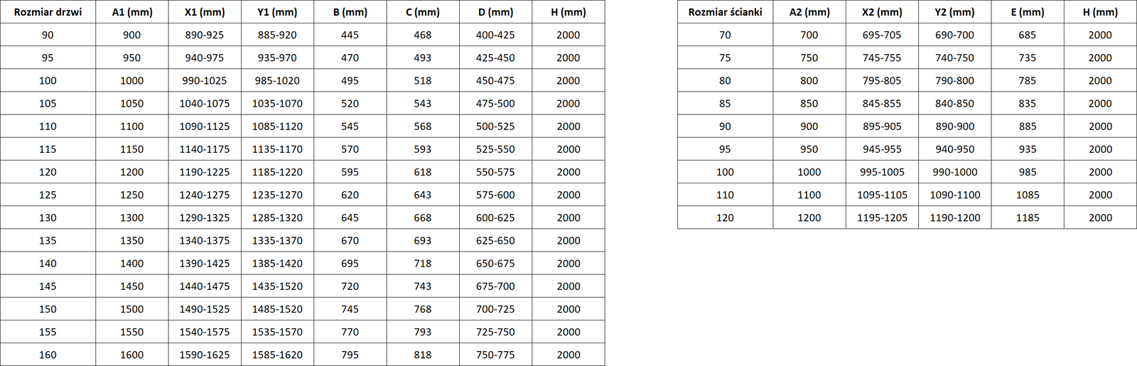 Tamaño: 105x95 cm (puerta derecha 105 cm, pared 95 cm)