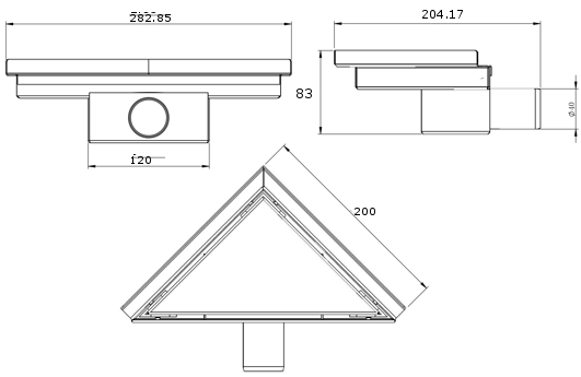 El desagüe lineal se instala a una profundidad de solo 52 mm. La pequeña profundidad permite una preparación más fácil de la superficie para la instalación del desagüe y un nivelado sencillo, asegurando así una alta estética y un eficiente drenaje del agua.