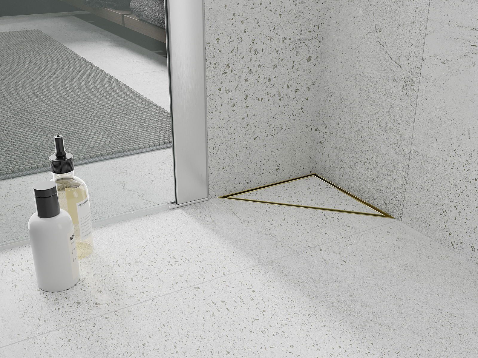 Mexen Flat-T M13 sumidero de suelo triangular 20 x 20 cm, oro cepillado - 1A10320