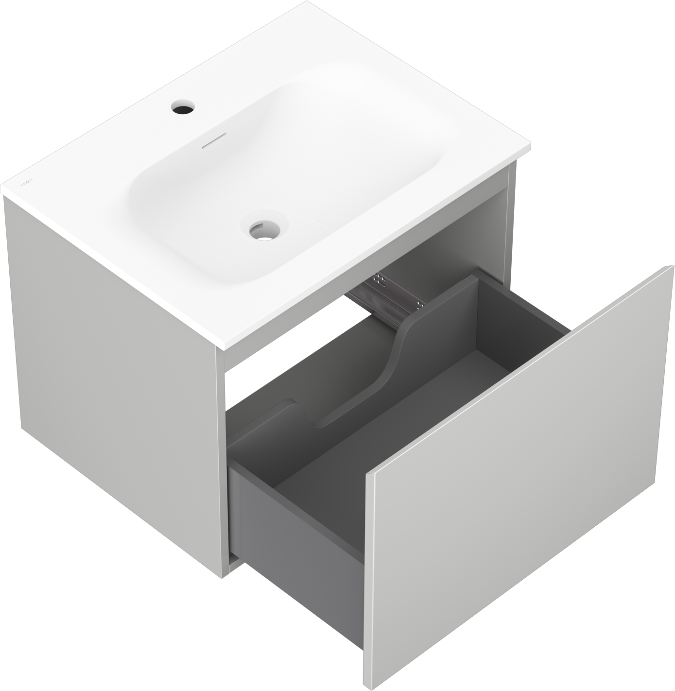 El corte en el cajón está diseñado de tal manera que pueda alojar el sifón, que es necesario en las instalaciones de lavabos. Gracias a esto, el mueble puede ser montado de manera completamente funcional, sin la necesidad de renunciar al espacio en el cajón en favor de la instalación.