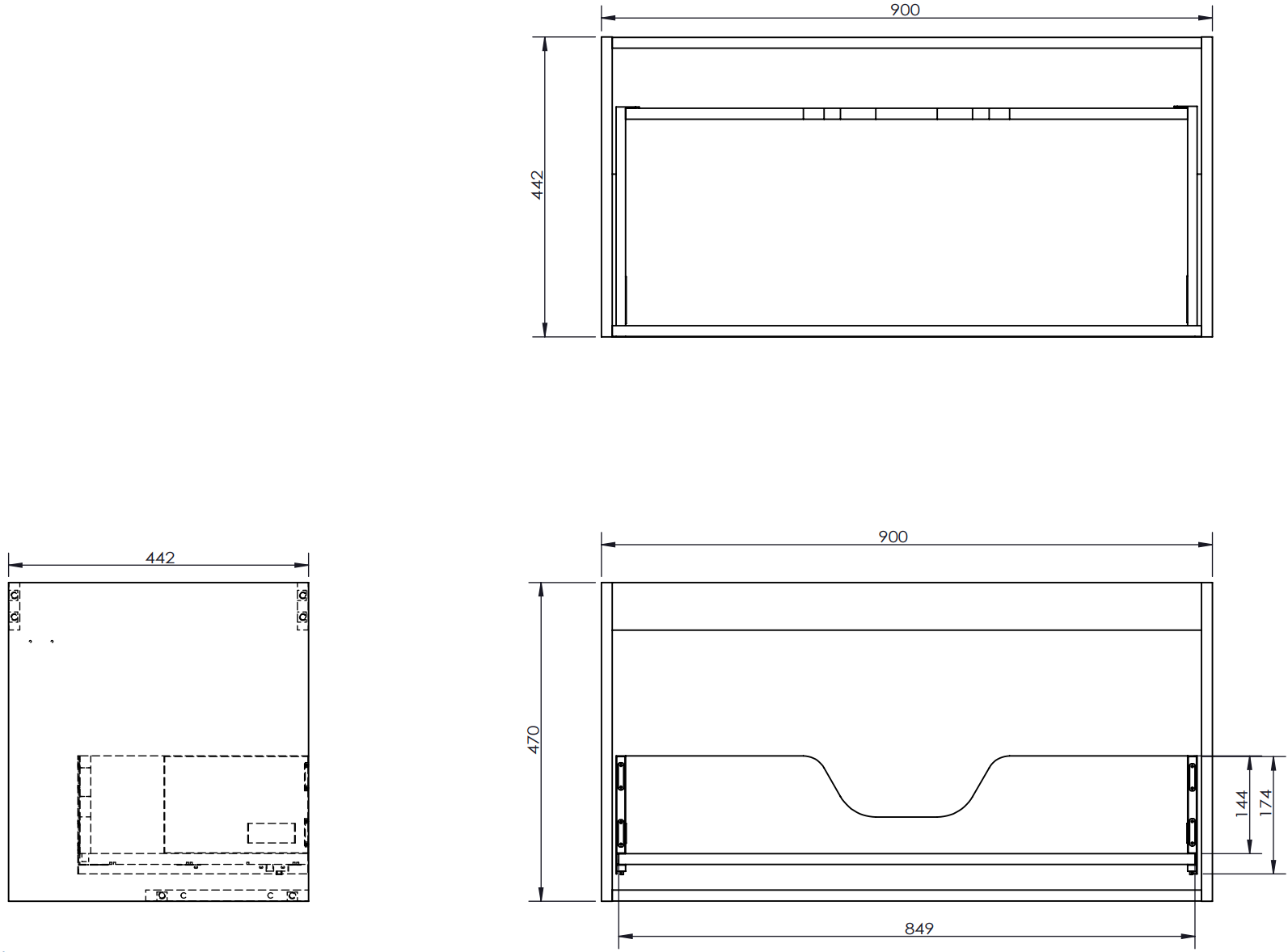 El corte en el cajón está diseñado de tal manera que pueda alojar el sifón, que es necesario en las instalaciones de lavabos. Gracias a esto, el mueble puede ser montado de manera completamente funcional, sin la necesidad de renunciar al espacio en el cajón en favor de la instalación.