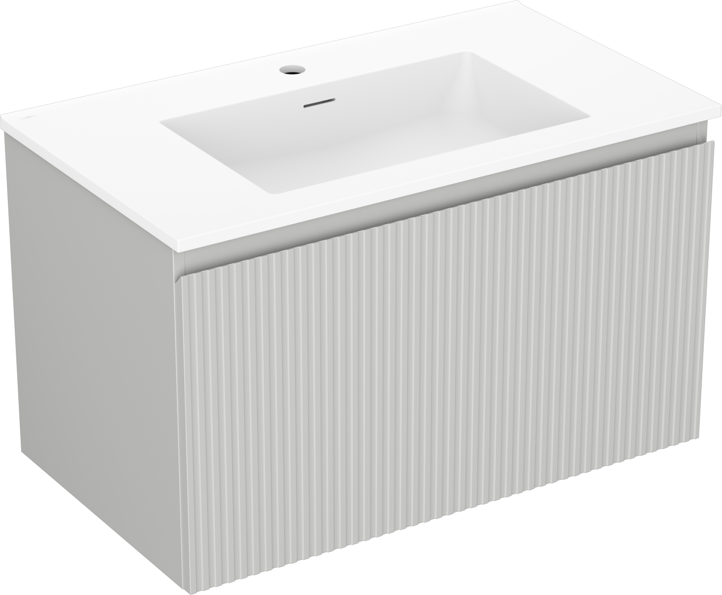 Mexen Rivel mueble de baño de 80 cm con lavabo Otis, 1 cajón, acanalado, gris mate/blanco mate - 91A20-08047-1-BF62-W18M01
