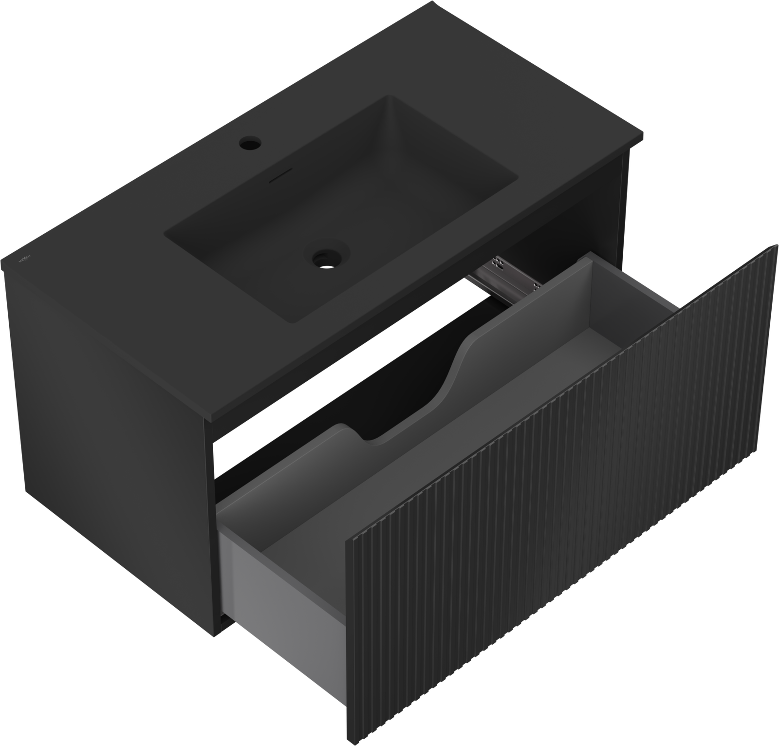Mexen Rivel mueble de baño 90 cm con lavabo Otis, 1 cajón, ranurado, negro mate - 91A20-09047-1-BF71-W18M71