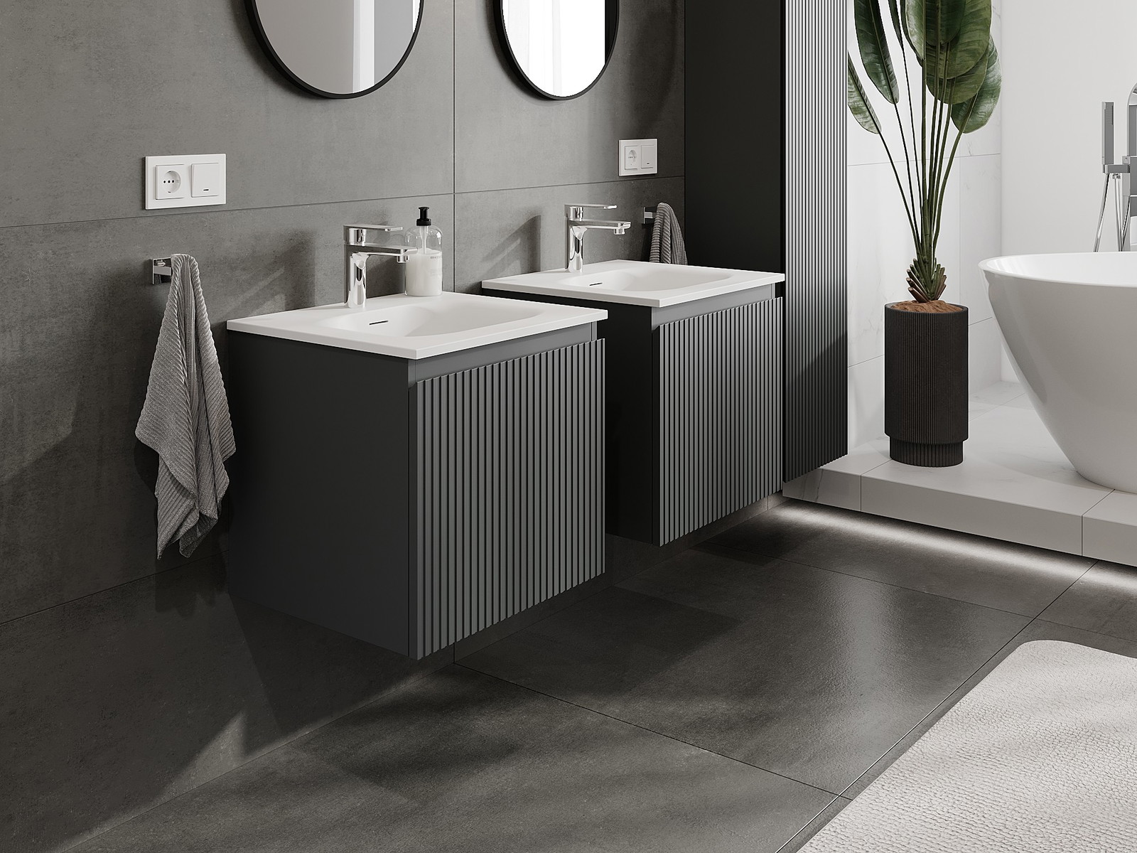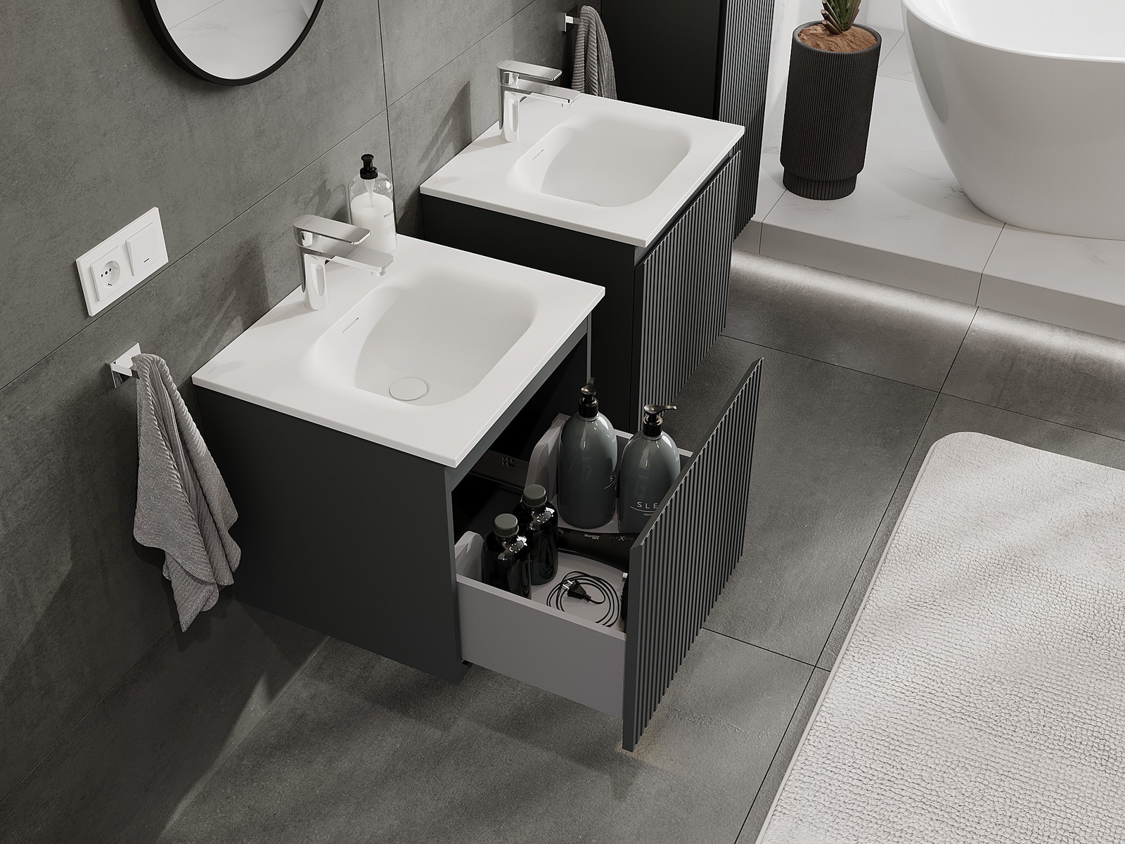 Nuestros muebles de baño modulares se pueden combinar en diferentes configuraciones de color, lo que permite una personalización completa. Se puede elegir tanto el aspecto como las funciones de los distintos elementos, lo que permite adaptar los muebles a las propias preferencias estilísticas y de uso.