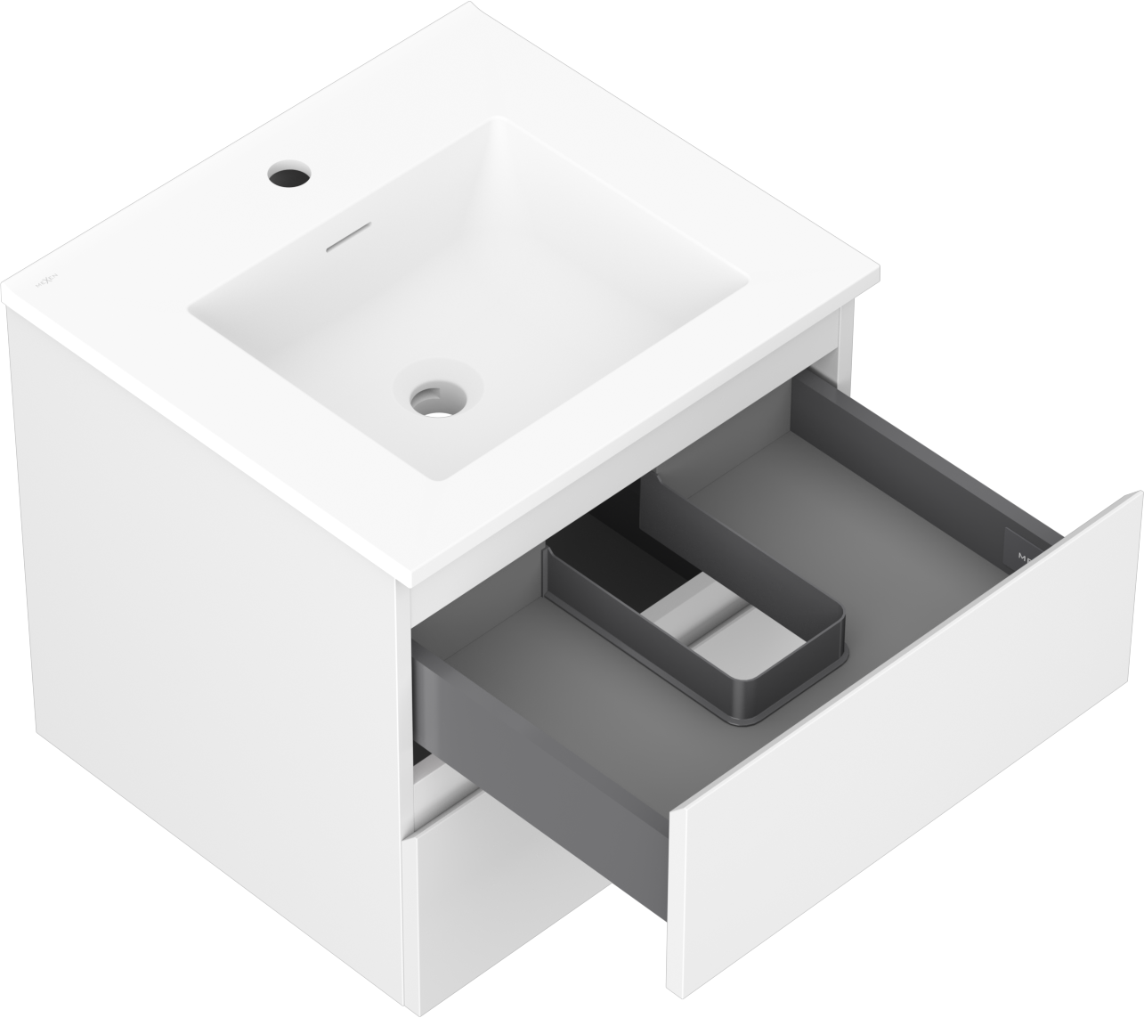 El corte en el cajón está diseñado de tal manera que pueda alojar el sifón, que es necesario en las instalaciones de lavabos. Gracias a esto, el mueble puede ser montado de manera completamente funcional, sin la necesidad de renunciar al espacio en el cajón en favor de la instalación.
