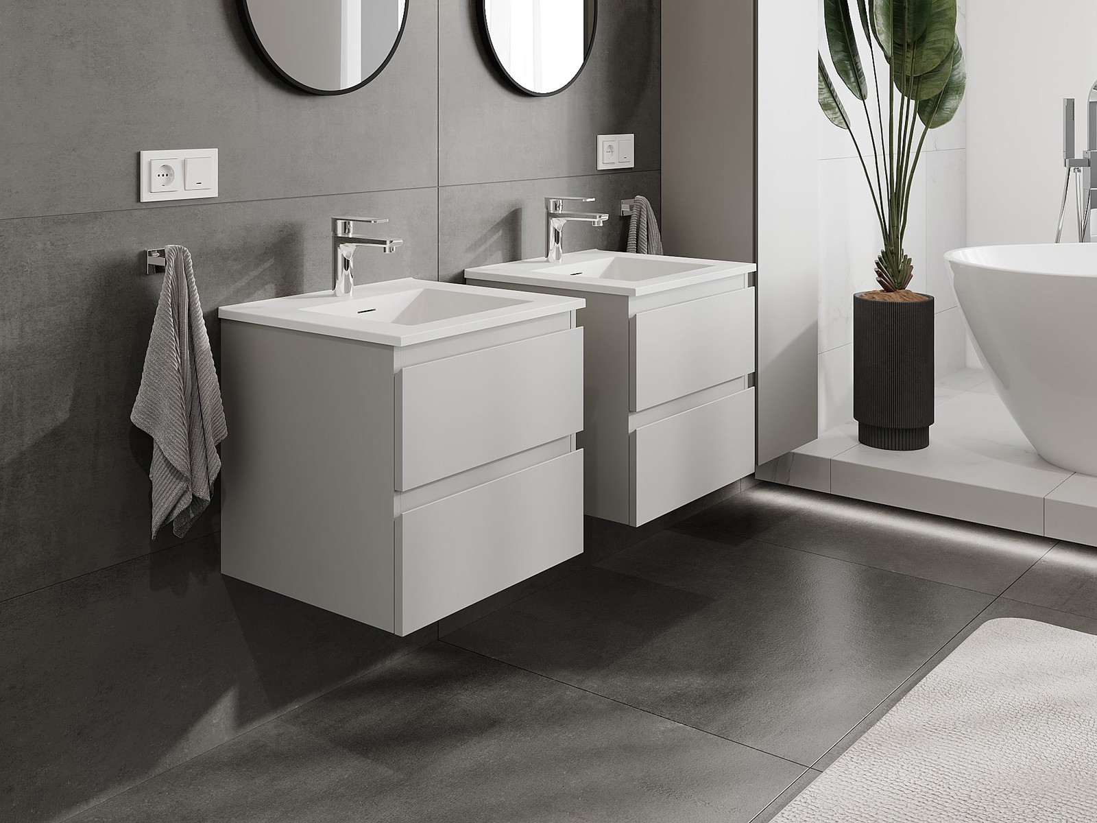 Nuestros muebles de baño modulares se pueden combinar en diferentes configuraciones de color, lo que permite una personalización completa. Se puede elegir tanto el aspecto como las funciones de los distintos elementos, lo que permite adaptar los muebles a las propias preferencias estilísticas y de uso.