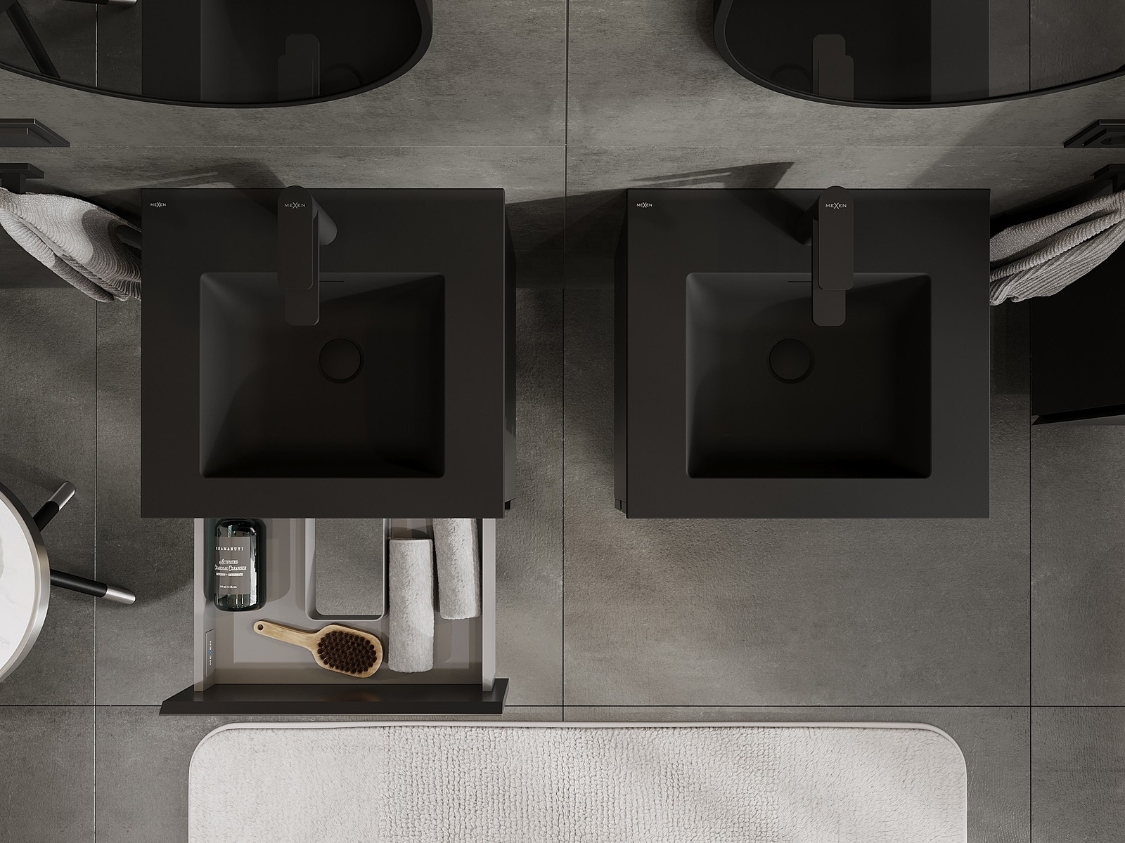 Nuestros muebles de baño modulares se pueden combinar en diferentes configuraciones de color, lo que permite una personalización completa. Se puede elegir tanto el aspecto como las funciones de los distintos elementos, lo que permite adaptar los muebles a las propias preferencias estilísticas y de uso.
