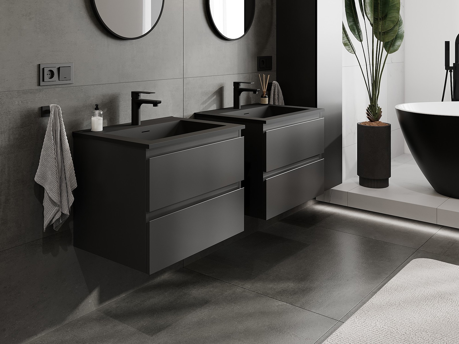 Nuestros muebles de baño modulares se pueden combinar en diferentes configuraciones de color, lo que permite una personalización completa. Se puede elegir tanto el aspecto como las funciones de los distintos elementos, lo que permite adaptar los muebles a las propias preferencias estilísticas y de uso.