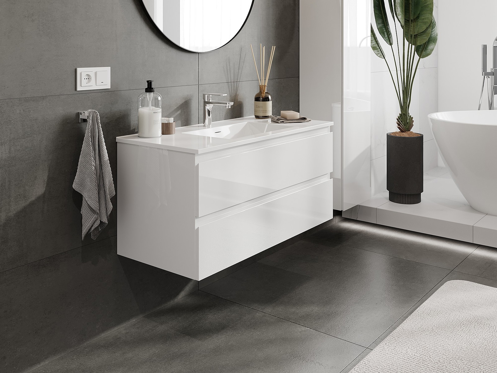 Nuestros muebles de baño modulares se pueden combinar en diferentes configuraciones de color, lo que permite una personalización completa. Se puede elegir tanto el aspecto como las funciones de los distintos elementos, lo que permite adaptar los muebles a las propias preferencias estilísticas y de uso.