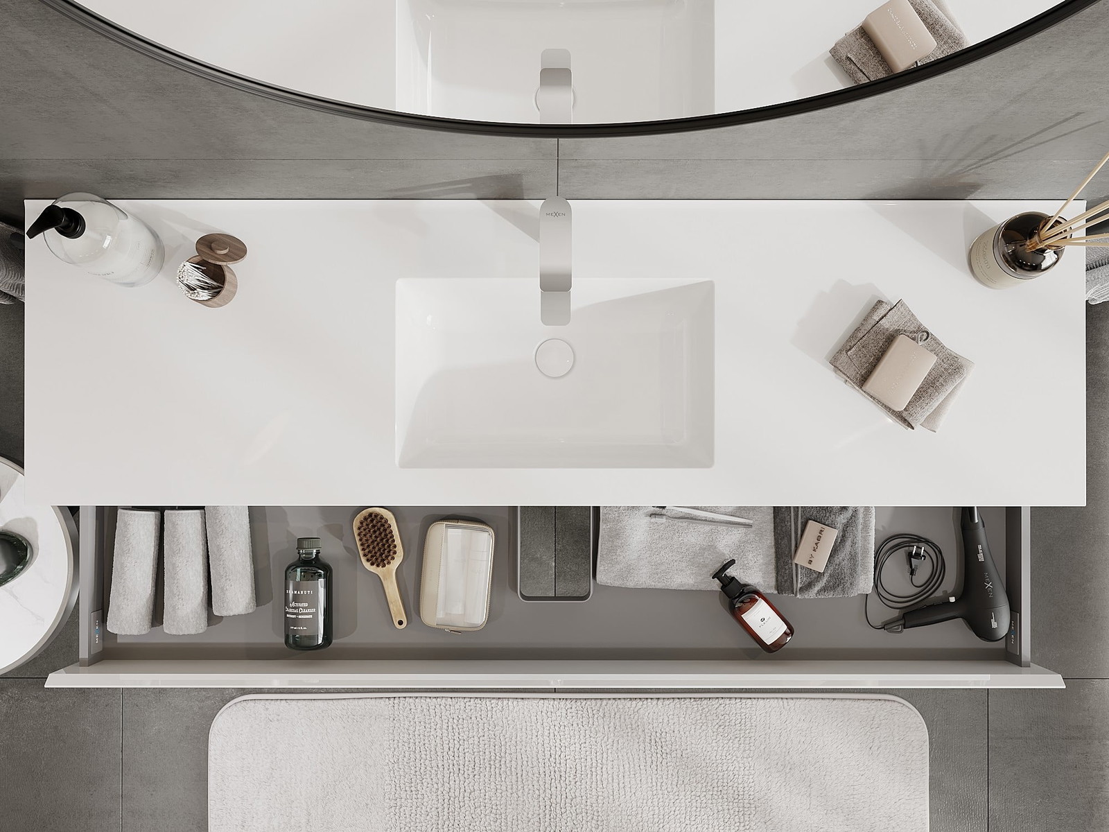 El cuerpo del gabinete se entrega completamente ensamblado, lo que significa máxima comodidad y ahorro de tiempo. No tienes que pasar horas ensamblando el mueble, solo necesitas instalarlo en el lugar elegido en el baño. Es la solución ideal para personas que valoran un montaje rápido y un efecto inmediato.