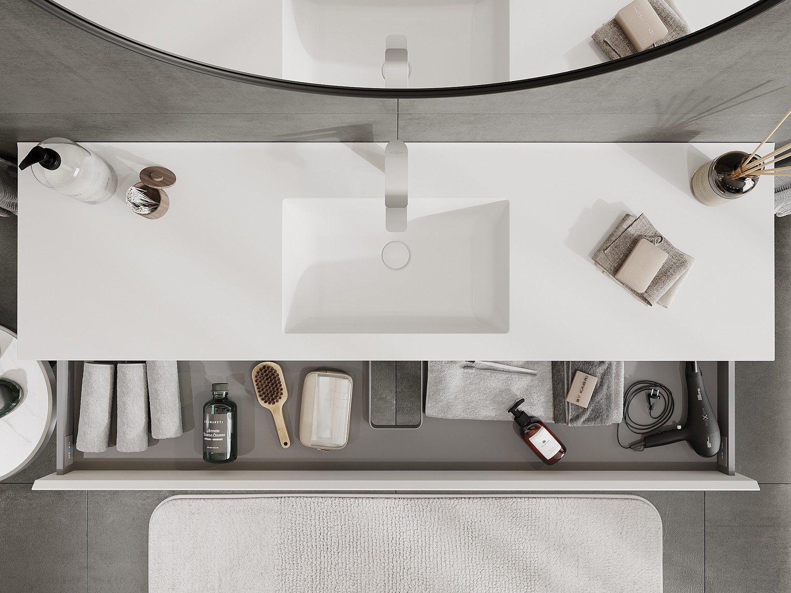 El cuerpo del gabinete se entrega completamente ensamblado, lo que significa máxima comodidad y ahorro de tiempo. No tienes que pasar horas ensamblando el mueble, solo necesitas instalarlo en el lugar elegido en el baño. Es la solución ideal para personas que valoran un montaje rápido y un efecto inmediato.