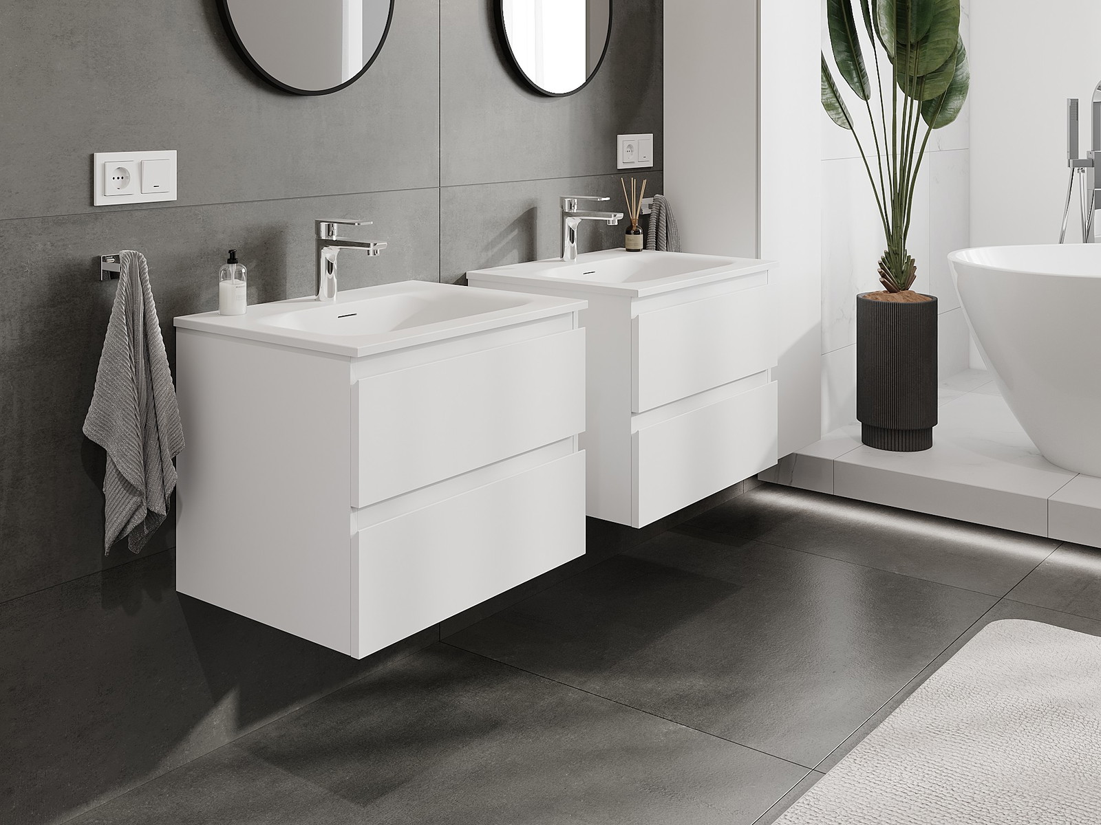 Nuestros muebles de baño modulares se pueden combinar en diferentes configuraciones de color, lo que permite una personalización completa. Se puede elegir tanto el aspecto como las funciones de los distintos elementos, lo que permite adaptar los muebles a las propias preferencias estilísticas y de uso.