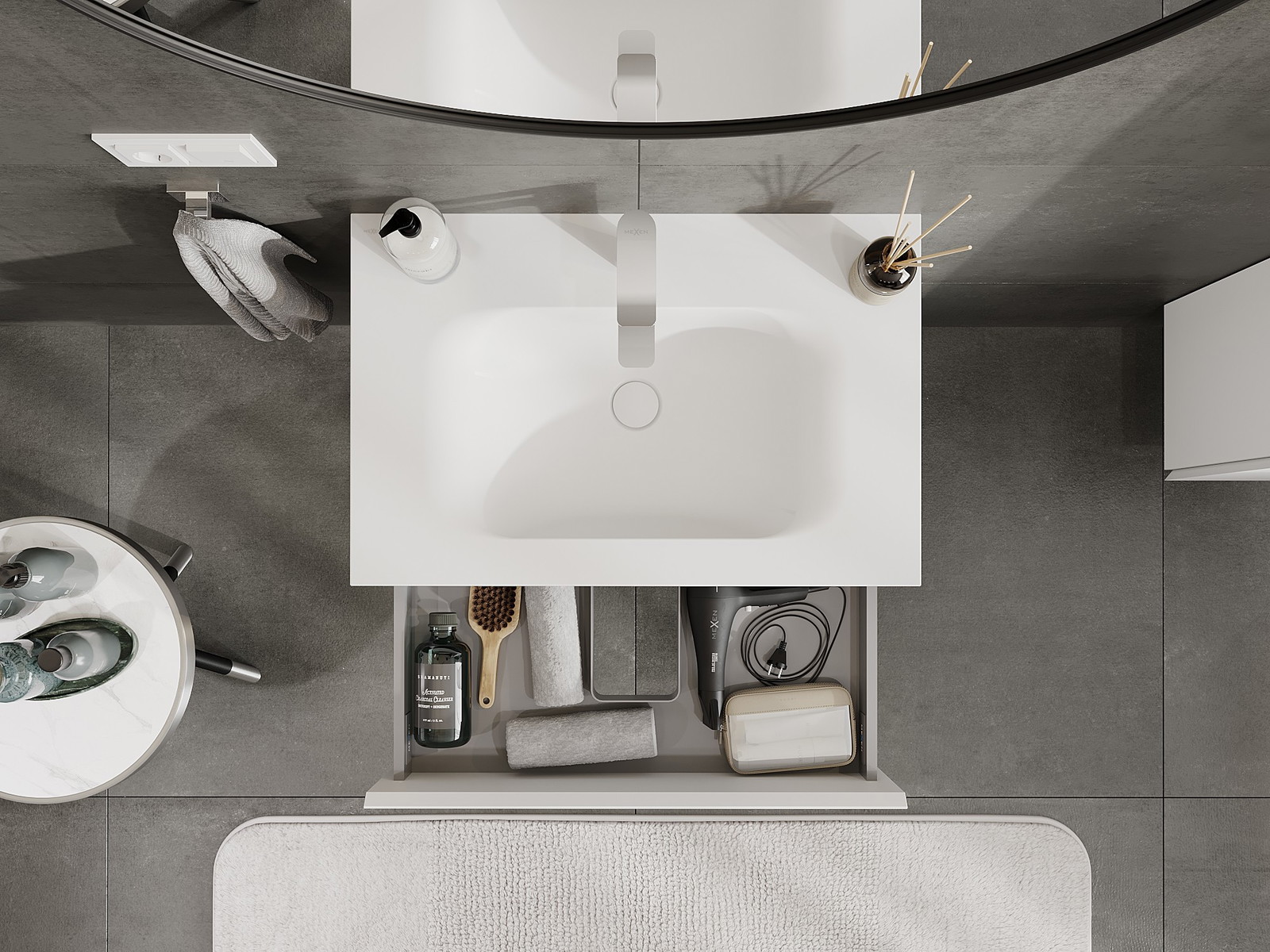 El cuerpo del gabinete se entrega completamente ensamblado, lo que significa máxima comodidad y ahorro de tiempo. No tienes que pasar horas ensamblando el mueble, solo necesitas instalarlo en el lugar elegido en el baño. Es la solución ideal para personas que valoran un montaje rápido y un efecto inmediato.