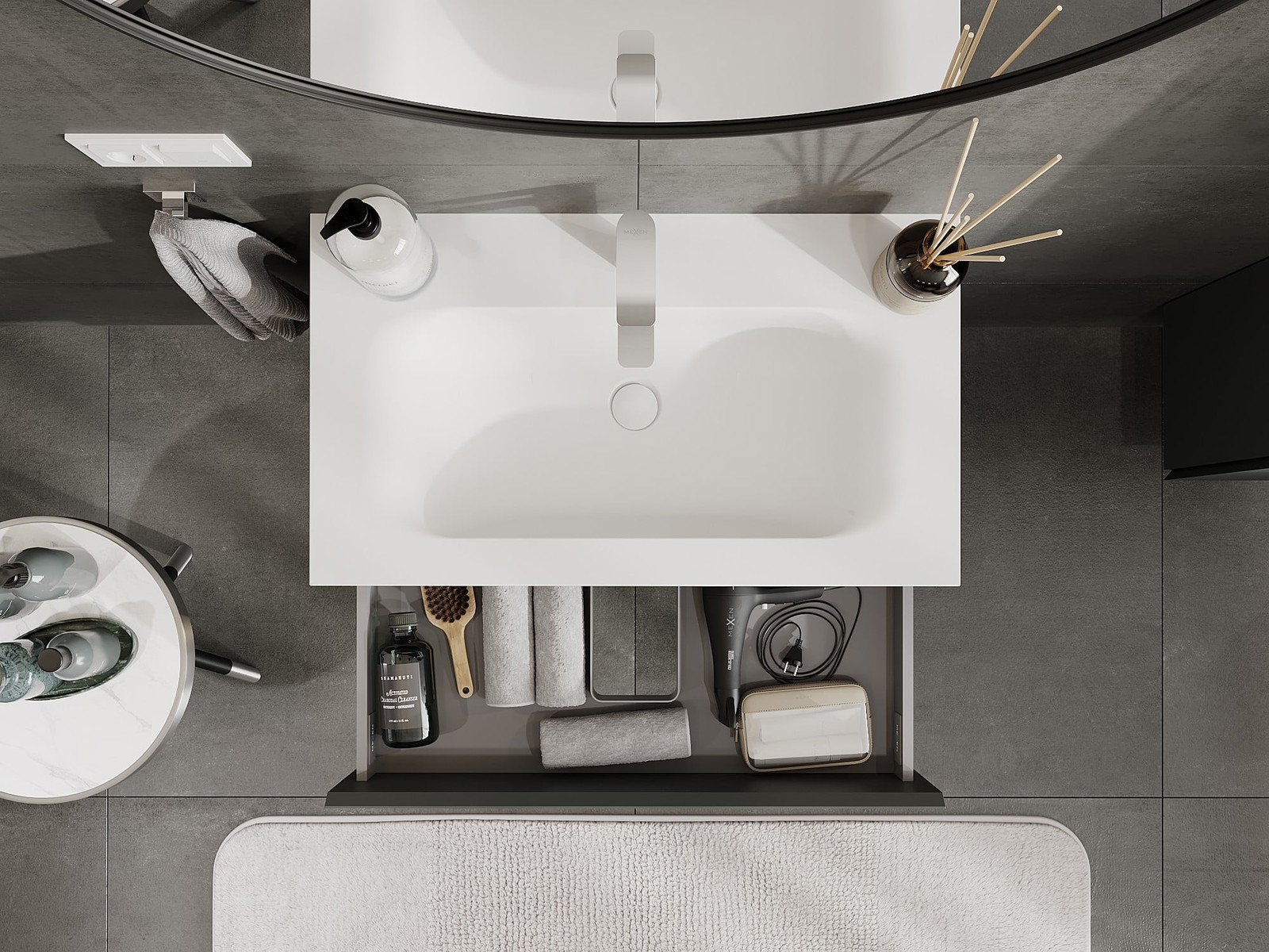 El cuerpo del gabinete se entrega completamente ensamblado, lo que significa máxima comodidad y ahorro de tiempo. No tienes que pasar horas ensamblando el mueble, solo necesitas instalarlo en el lugar elegido en el baño. Es la solución ideal para personas que valoran un montaje rápido y un efecto inmediato.