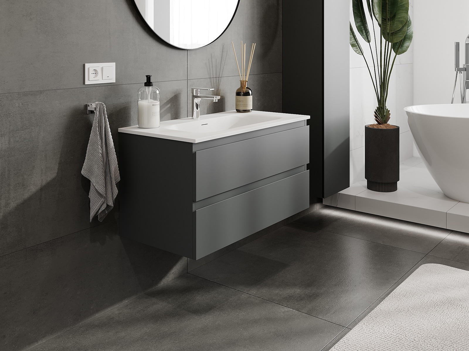 Nuestros muebles de baño modulares se pueden combinar en diferentes configuraciones de color, lo que permite una personalización completa. Se puede elegir tanto el aspecto como las funciones de los distintos elementos, lo que permite adaptar los muebles a las propias preferencias estilísticas y de uso.