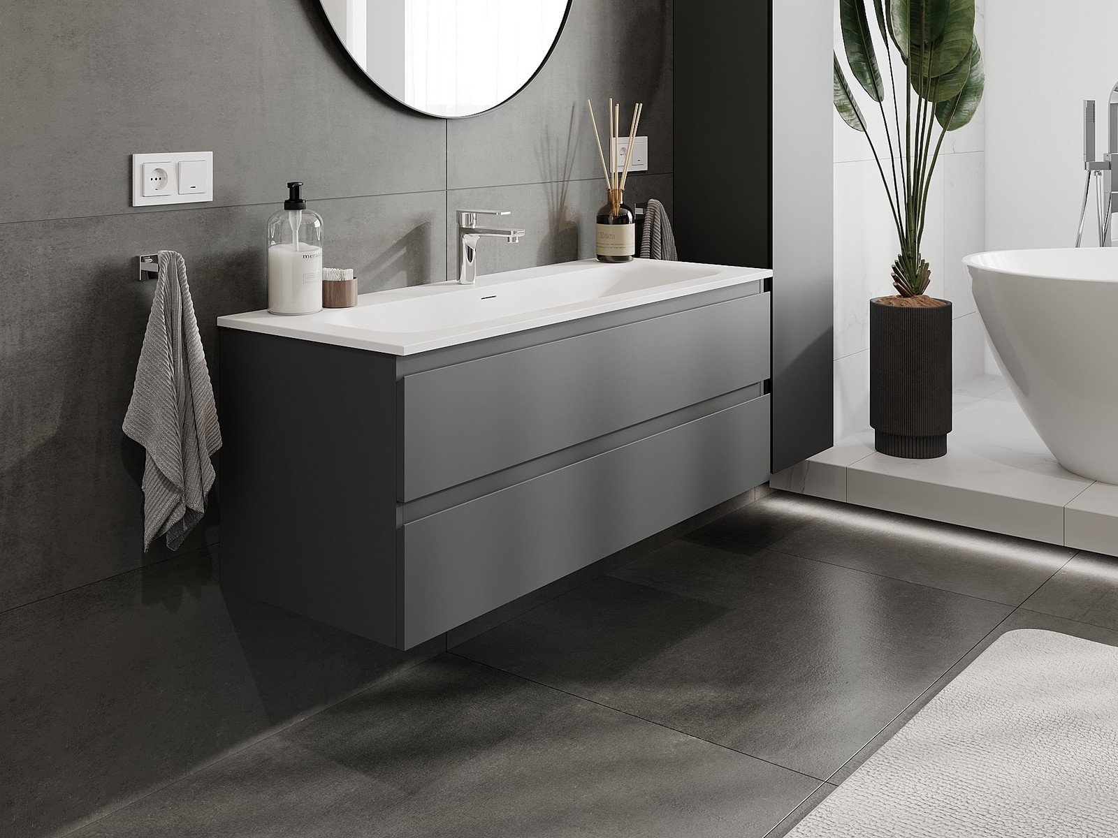Nuestros muebles de baño modulares se pueden combinar en diferentes configuraciones de color, lo que permite una personalización completa. Se puede elegir tanto el aspecto como las funciones de los distintos elementos, lo que permite adaptar los muebles a las propias preferencias estilísticas y de uso.